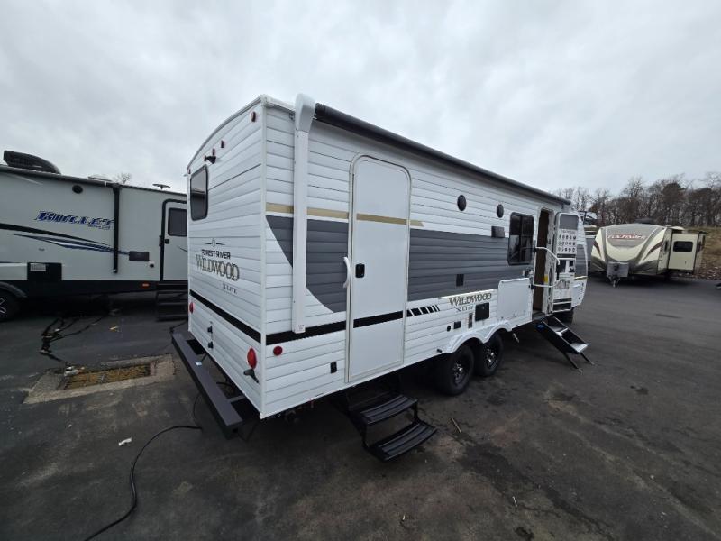 The Wildwood X-Lite travel trailers are packed with hassle-free camping amenities! There are a variety of floorplans to choose from so you can find the best one to fit your needs. The enclosed Accessibelly will help protect against the elements and debris during transport, and the exterior retro/metal redesign is sure to be eye-catching! There are stylish roller shades inside, along with updated backsplash, elegant curtain rods and curtains, plus many more interior comforts! Choose a Wildwood X-Lite travel trailer today for quality and value!