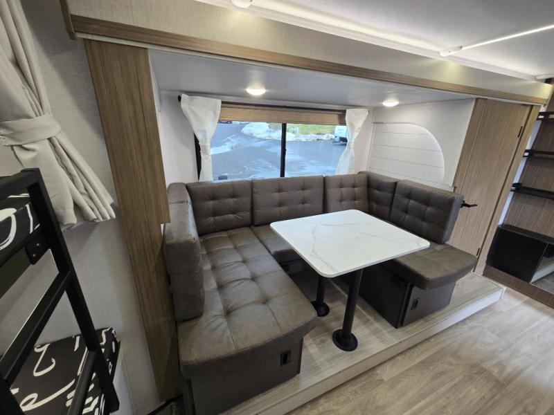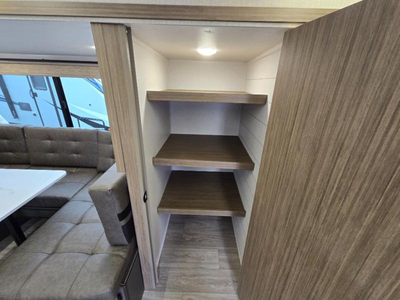 The double-size bunks pack a lot of extra sleeping space into this Wildwood X-Lite travel trailer! Some of the other comfortable features that you will find are the U-shaped dinette that has panoramic windows surrounding it, the entertainment center with an electric fireplace below, the private bedroom with a custom king bed with Versa Tilt, and the walk-in pantry that will make it easy to grab your spices and snacks. There is also a full bath with a walk-in shower plus a fully equipped kitchen, allowing you to make your best meals. Outside, you'll have an 18' awning that provides a protected area to relax and enjoy nature and a full pass-thru storage for all your camp gear!