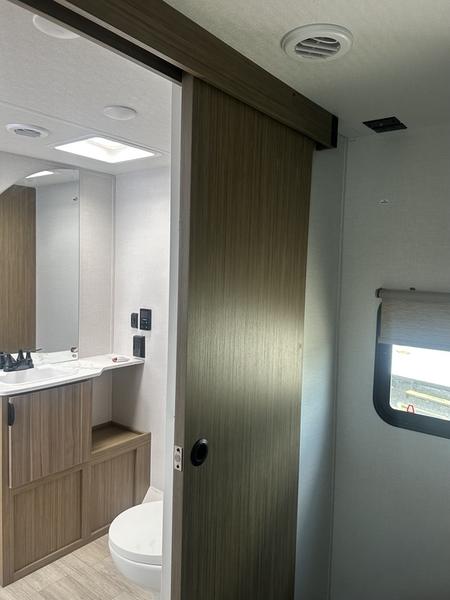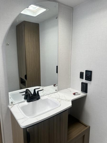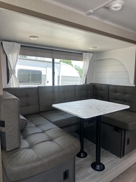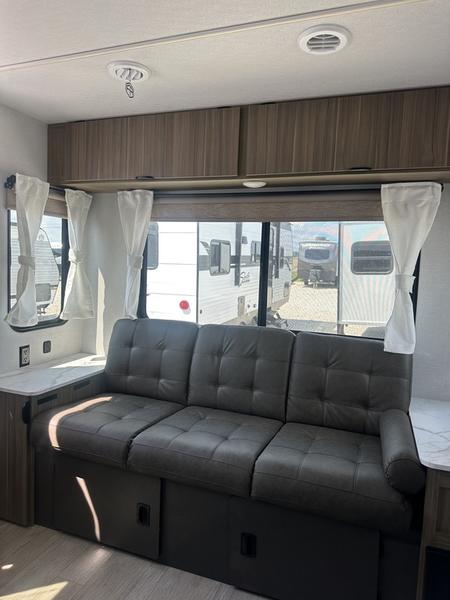 Whether it's a family vacation or a romantic getaway with your significant other, this Wildwood X-Lite travel trailer will make it the very best! The master bedroom has many places to store items with the walk-in closet and bedside closet plus the overhead cabinet, and the walk-through bath also provides additional storage with a linen closet and vanity. There is also a custom king bed with Versa-Tilt you are sure to enjoy. The kitchen has modern amenities, like the oversized refrigerator and double sink, plus the U-shaped dinette has panoramic windows that surround it to create an inviting space to spend your time. And you will enjoy the protection from the 16' awning and the sturdy Step Above steps at the entry.