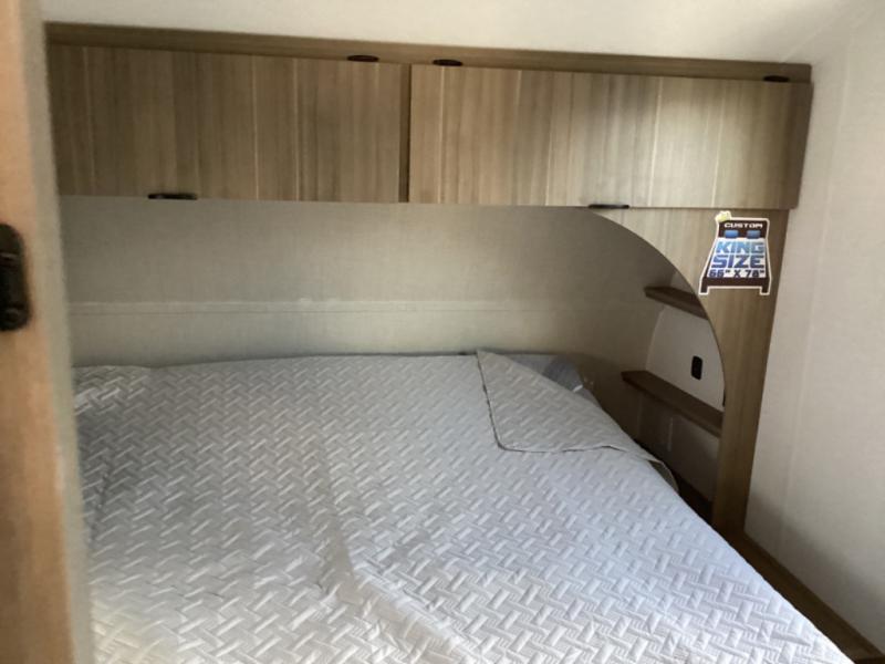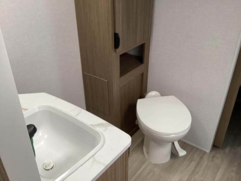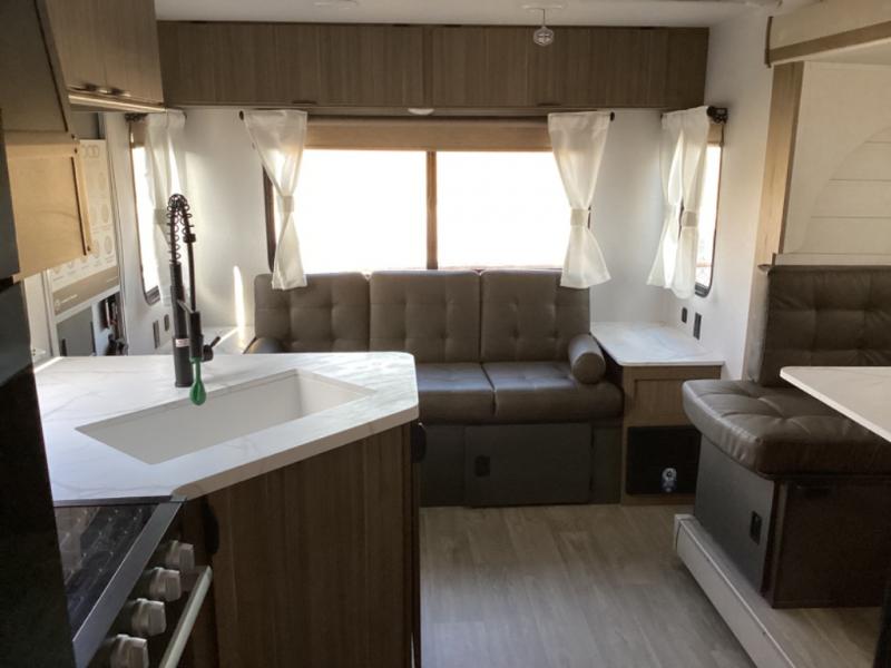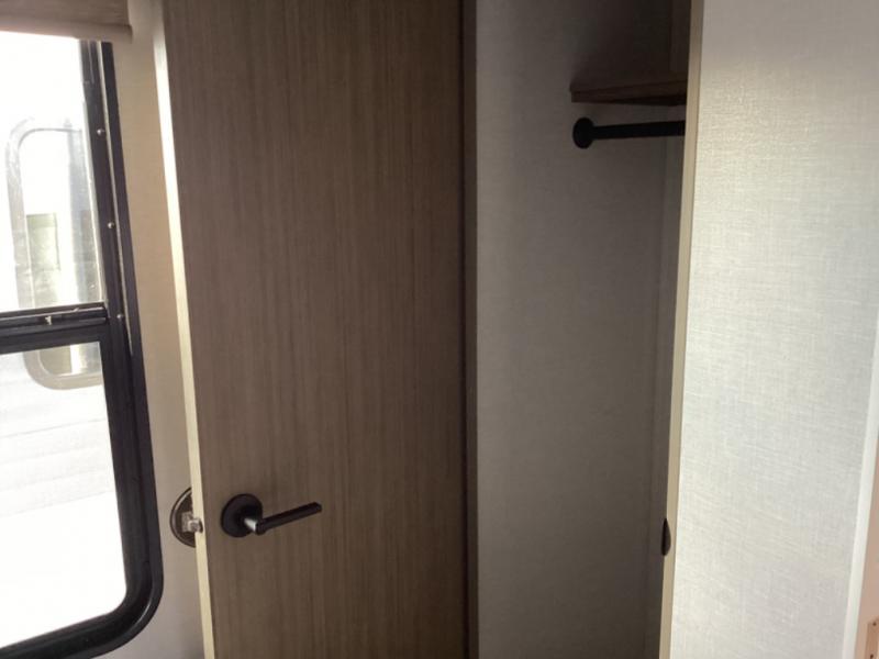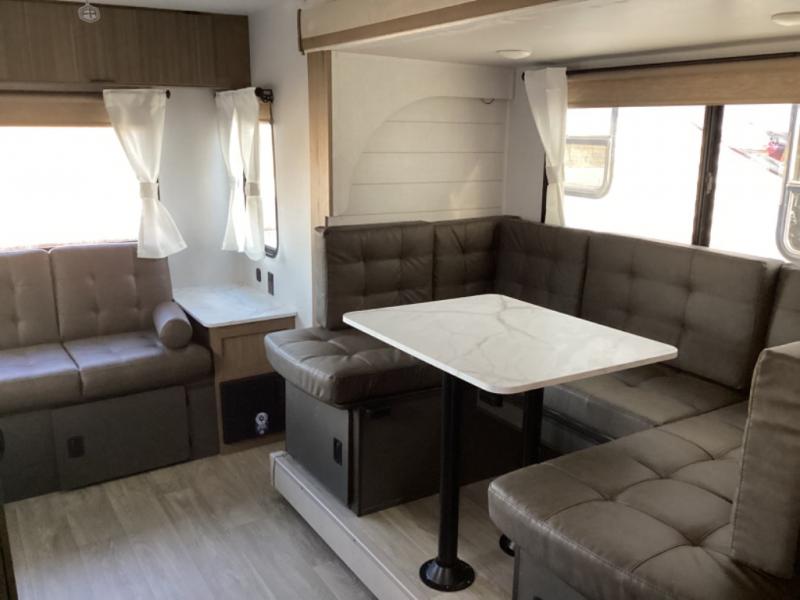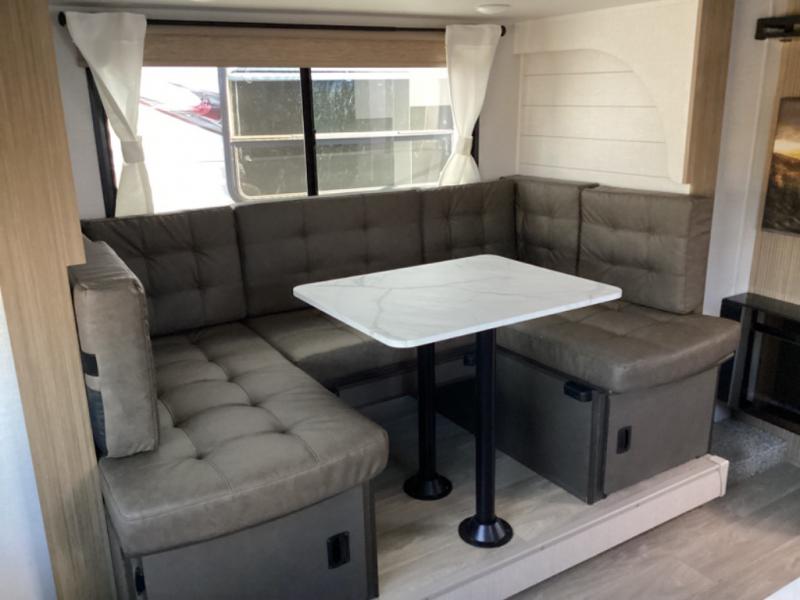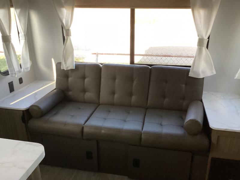Whether it's a family vacation or a romantic getaway with your significant other, this Wildwood X-Lite travel trailer will make it the very best! The master bedroom has many places to store items with the walk-in closet and bedside closet plus the overhead cabinet, and the walk-through bath also provides additional storage with a linen closet and vanity. There is also a custom king bed with Versa-Tilt you are sure to enjoy. The kitchen has modern amenities, like the oversized refrigerator and double sink, plus the U-shaped dinette has panoramic windows that surround it to create an inviting space to spend your time. And you will enjoy the protection from the 16' awning and the sturdy Step Above steps at the entry.