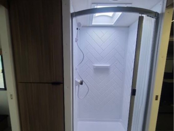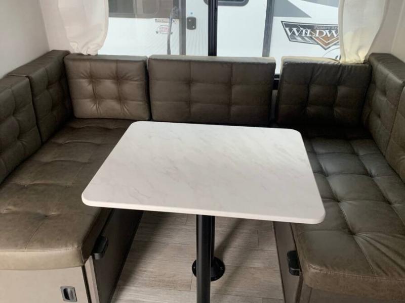 Whether it's a family vacation or a romantic getaway with your significant other, this Platinum Wildwood X-Lite travel trailer will make it the very best! The master bedroom has many places to store items with the walk-in closet and bedside closet plus the overhead cabinet, and the walk-through bath also provides additional storage with a linen closet and vanity. The kitchen has modern amenities, like an oversized refrigerator and double sink, plus the U-shaped dinette has panoramic windows that surround it to create an inviting space to spend your time. And you will enjoy the protection from the 16' awning and the sturdy Step Above steps at the entry.
