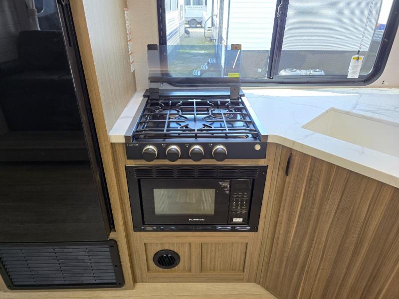 The Wildwood X-Lite travel trailers are packed with hassle-free camping amenities! There are a variety of floorplans to choose from between three different regions. The enclosed Accessibelly will help protect against the elements and debris during transport, and the exterior retro/metal redesign is sure to be eye-catching! There are stylish roller shades inside, along with updated backsplash, elegant curtain rods and curtains, plus many more interior comforts! Choose a Wildwood X-Lite travel trailer today for quality and value!