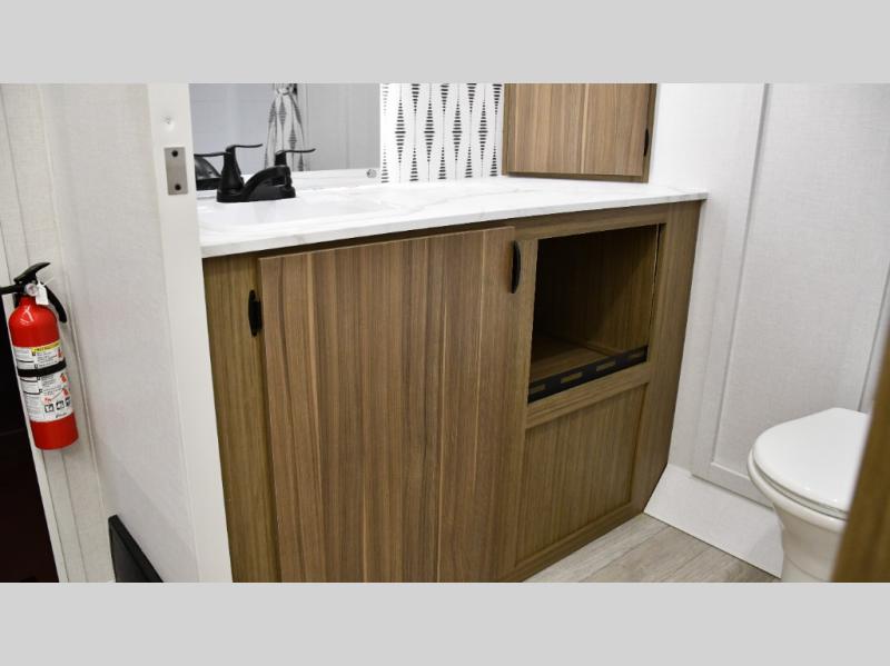 Full Rear Bathroom with a tub/shower combo and generous countertop space for all your toiletries