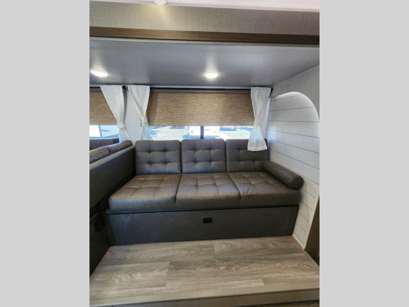 The Wildwood X-Lite travel trailers are packed with hassle-free camping amenities! There are a variety of floorplans to choose from between three different regions. The enclosed Accessibelly will help protect against the elements and debris during transport, and the exterior retro/metal redesign is sure to be eye-catching! There are stylish roller shades inside, along with updated backsplash, elegant curtain rods and curtains, plus many more interior comforts! Choose a Wildwood X-Lite travel trailer today for quality and value!