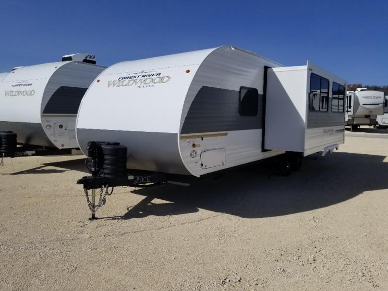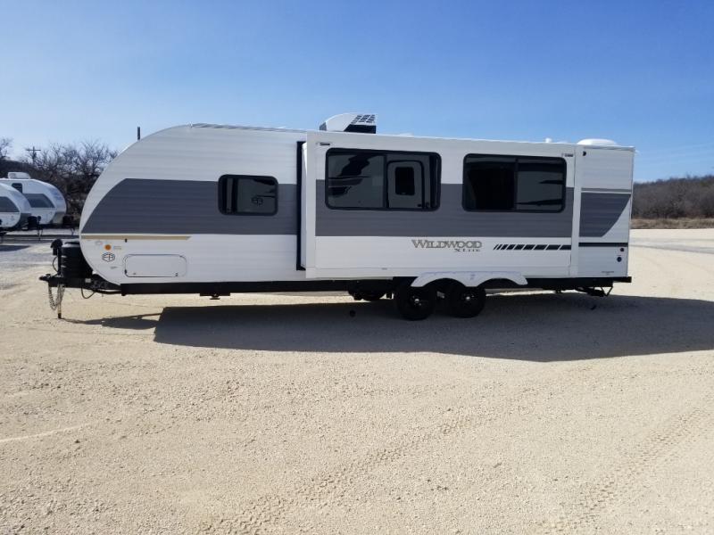 The Wildwood X-Lite travel trailers are packed with hassle-free camping amenities! There are a variety of floorplans to choose from so you can find the best one to fit your needs. The enclosed Accessibelly will help protect against the elements and debris during transport, and the exterior retro/metal redesign is sure to be eye-catching! There are stylish roller shades inside, along with updated backsplash, elegant curtain rods and curtains, plus many more interior comforts! Choose a Wildwood X-Lite travel trailer today for quality and value!