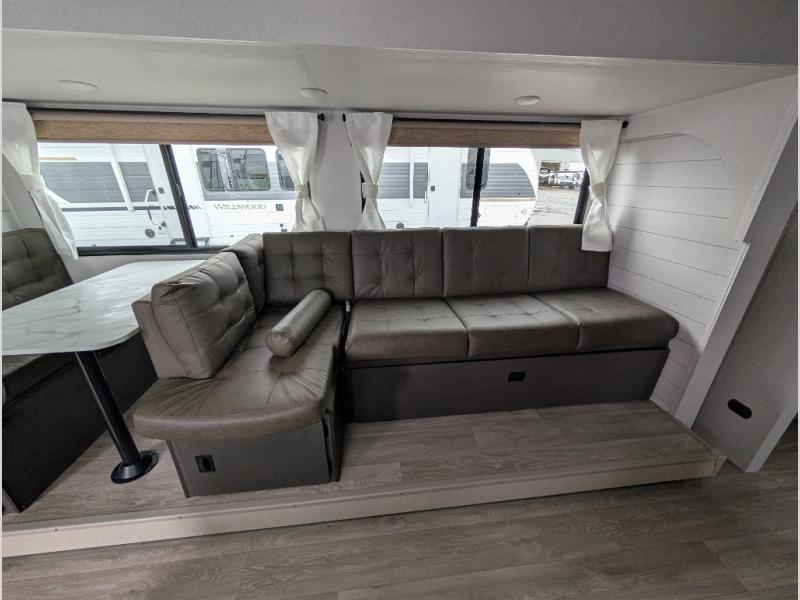 The Wildwood X-Lite travel trailers are packed with hassle-free camping amenities! There are a variety of floorplans to choose from so you can find the best one to fit your needs. The enclosed Accessibelly will help protect against the elements and debris during transport, and the exterior retro/metal redesign is sure to be eye-catching! There are stylish roller shades inside, along with updated backsplash, elegant curtain rods and curtains, plus many more interior comforts! Choose a Wildwood X-Lite travel trailer today for quality and value!