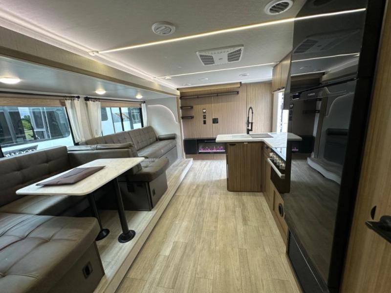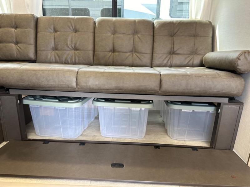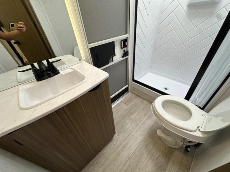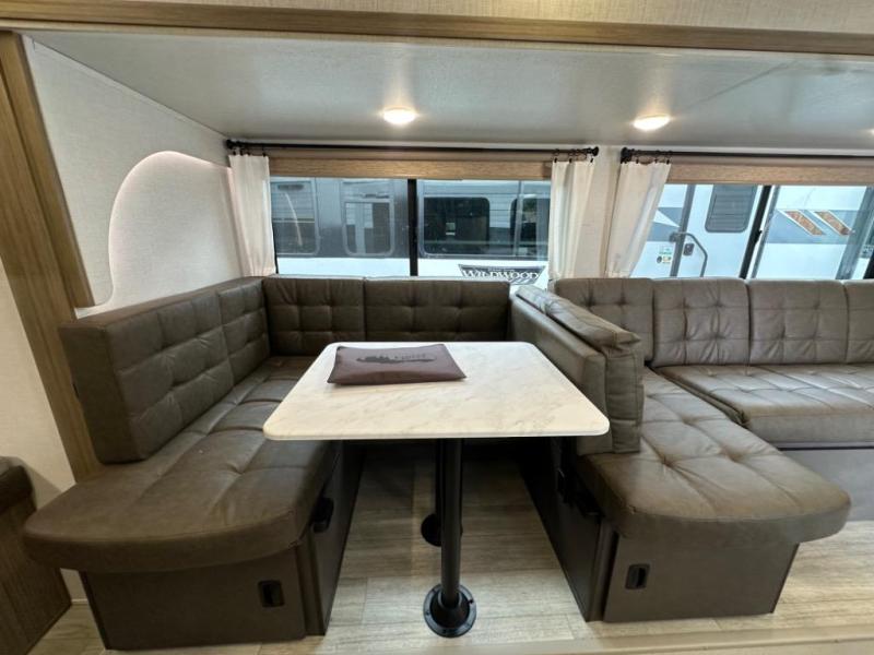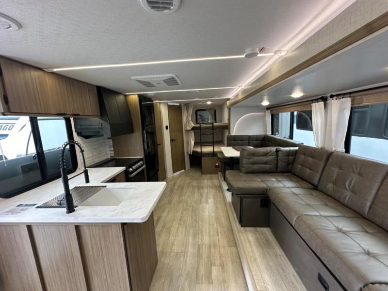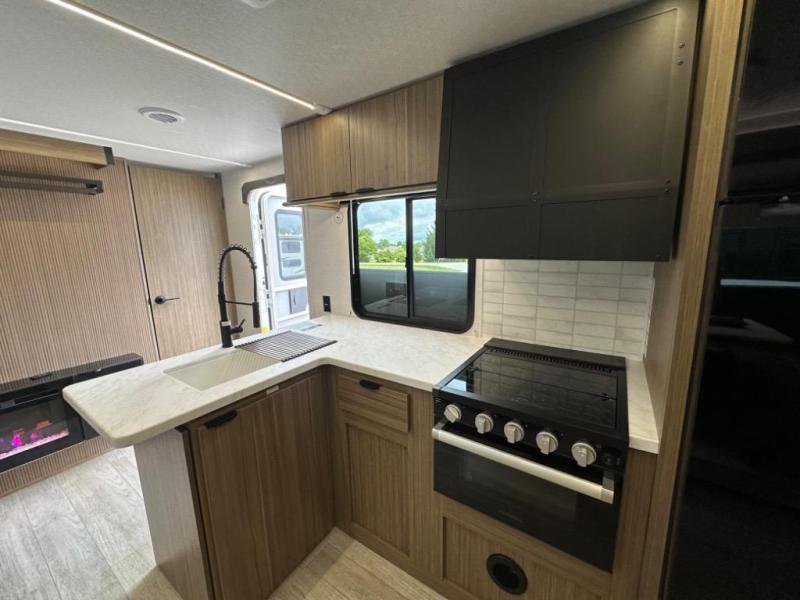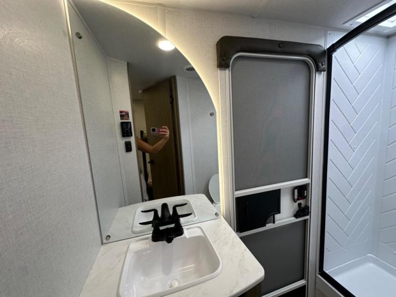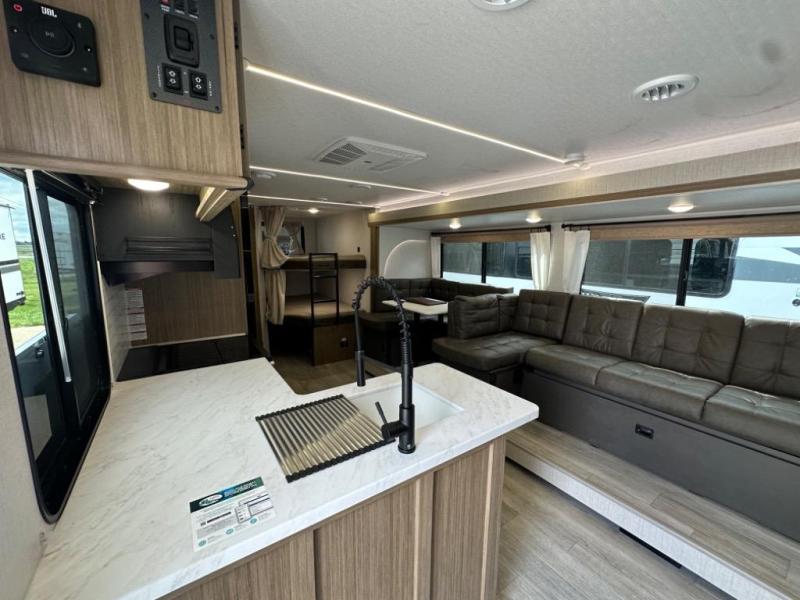 If you need a trailer that will enhance your family getaways, this Wildwood X-Lite travel trailer is it! Because of the double-size bunks in the back and the custom king bed with Versa-Tilt in the front private bedroom, your family can stretch out and sleep comfortably, and the Versa Lounge, which is made up of a U-shaped dinette and sofa, can also transform into extra sleeping space if needed. The whole family will enjoy how accessible the full bathroom is because it contains both an interior and exterior entry door, and the entertainment center with a fireplace is certainly going to enrich your time spent indoors. You will also enjoy the exterior camp kitchen with a griddle for breakfast outdoors!