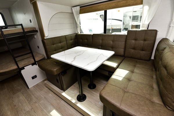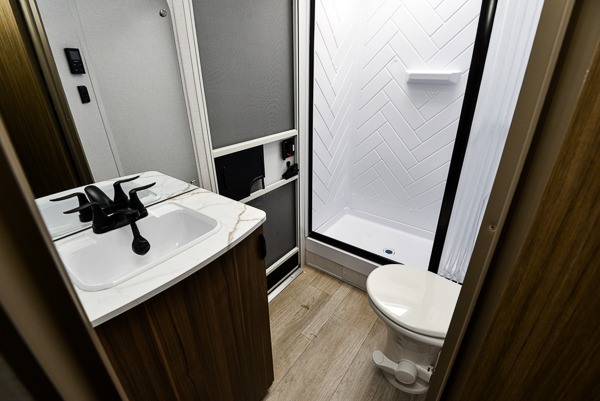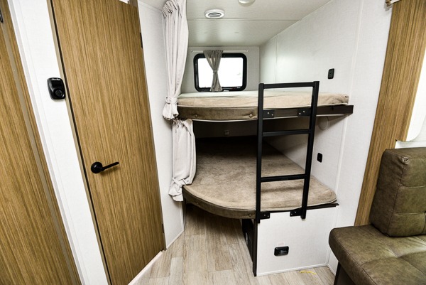 If you need a trailer that will enhance your family getaways, this Wildwood X-Lite travel trailer is it! Because of the double-size bunks in the back and the custom king bed with Versa-Tilt in the front private bedroom, your family can stretch out and sleep comfortably, and the Versa Lounge, which is made up of a U-shaped dinette and sofa, can also transform into extra sleeping space if needed. The whole family will enjoy how accessible the full bathroom is because it contains both an interior and exterior entry door, and the entertainment center with a fireplace is certainly going to enrich your time spent indoors. You will also enjoy the exterior camp kitchen with a griddle for breakfast outdoors!