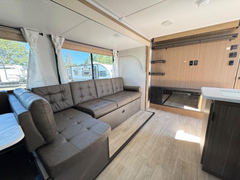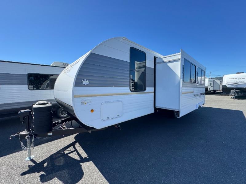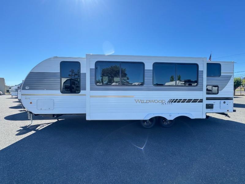 The Wildwood X-Lite travel trailers are packed with hassle-free camping amenities! There are a variety of floorplans to choose from between three different regions. The enclosed Accessibelly will help protect against the elements and debris during transport, and the exterior retro/metal redesign is sure to be eye-catching! There are stylish roller shades inside, along with updated backsplash, elegant curtain rods and curtains, plus many more interior comforts! Choose a Wildwood X-Lite travel trailer today for quality and value!