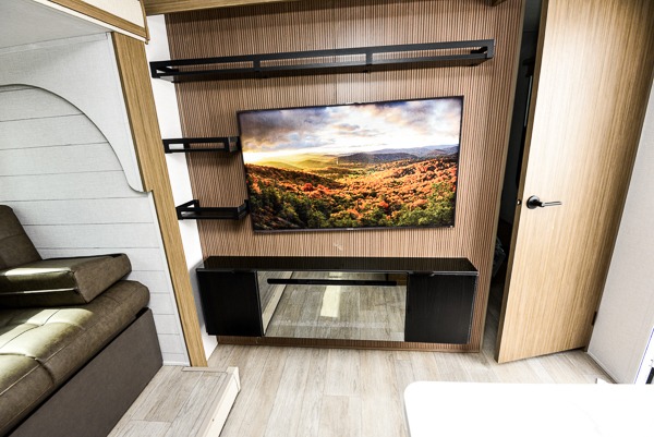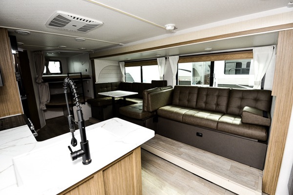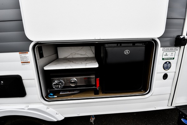 If you need a trailer that will enhance your family getaways, this Wildwood X-Lite travel trailer is it! Because of the double-size bunks in the back and the custom king bed with Versa-Tilt in the front private bedroom, your family can stretch out and sleep comfortably, and the Versa Lounge, which is made up of a U-shaped dinette and sofa, can also transform into extra sleeping space if needed. The whole family will enjoy how accessible the full bathroom is because it contains both an interior and exterior entry door, and the entertainment center with a fireplace is certainly going to enrich your time spent indoors. You will also enjoy the exterior camp kitchen with a griddle for breakfast outdoors!