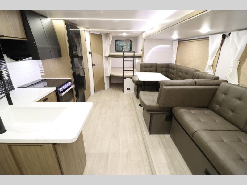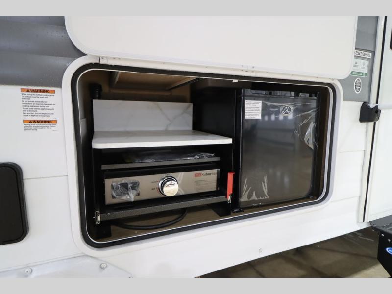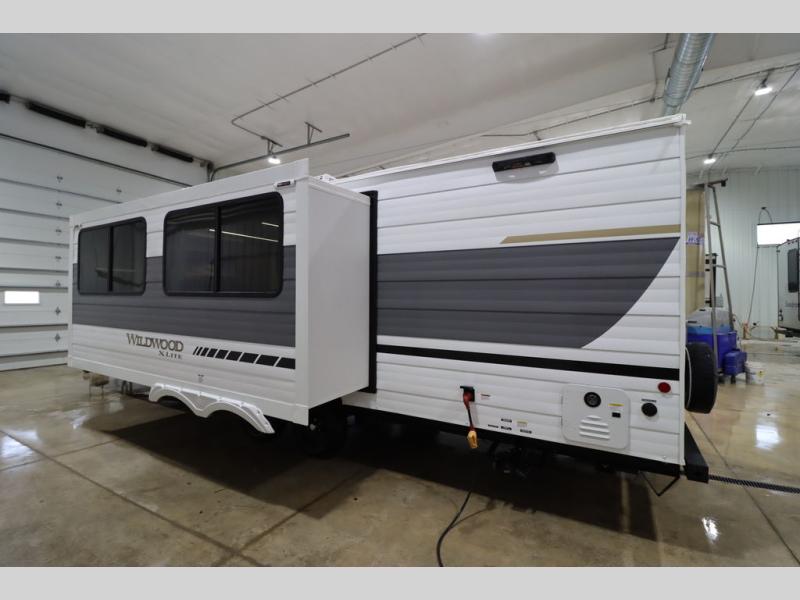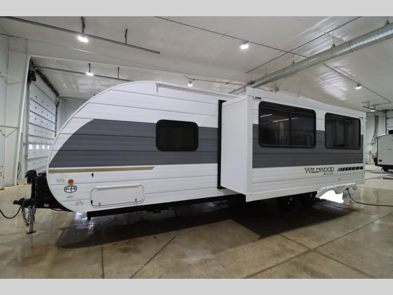 The Wildwood X-Lite travel trailers are packed with hassle-free camping amenities! There are a variety of floorplans to choose from between three different regions. The enclosed Accessibelly will help protect against the elements and debris during transport, and the exterior retro/metal redesign is sure to be eye-catching! There are stylish roller shades inside, along with updated backsplash, elegant curtain rods and curtains, plus many more interior comforts! Choose a Wildwood X-Lite travel trailer today for quality and value!