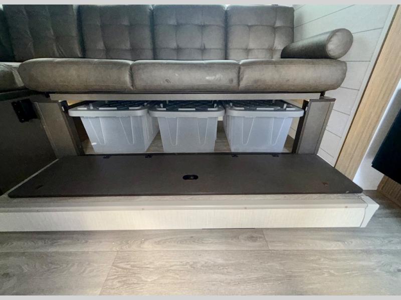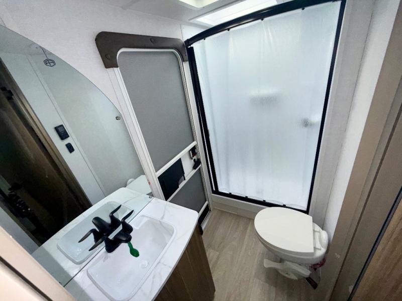If you need a trailer that will enhance your family getaways, this Wildwood X-Lite travel trailer is it! Because of the double-size bunks in the back and the custom king bed with Versa-Tilt in the front private bedroom, your family can stretch out and sleep comfortably, and the Versa Lounge, which is made up of a U-shaped dinette and sofa, can also transform into extra sleeping space if needed. The whole family will enjoy how accessible the full bathroom is because it contains both an interior and exterior entry door, and the entertainment center with a fireplace is certainly going to enrich your time spent indoors. You will also enjoy the exterior camp kitchen with a griddle for breakfast outdoors!