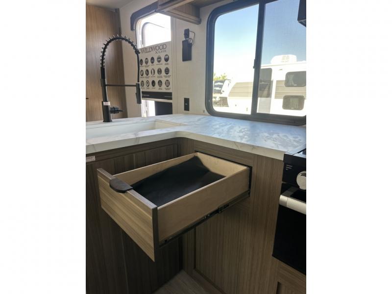 The Wildwood X-Lite travel trailers are packed with hassle-free camping amenities! There are a variety of floorplans to choose from so you cand find the best one to fit your needs. The enclosed Accessibelly will help protect against the elements and debris during transport, and the exterior retro/metal redesign is sure to be eye-catching! There are stylish roller shades inside, along with updated backsplash, elegant curtain rods and curtains, plus many more interior comforts! Choose a Wildwood X-Lite travel trailer today for quality and value!