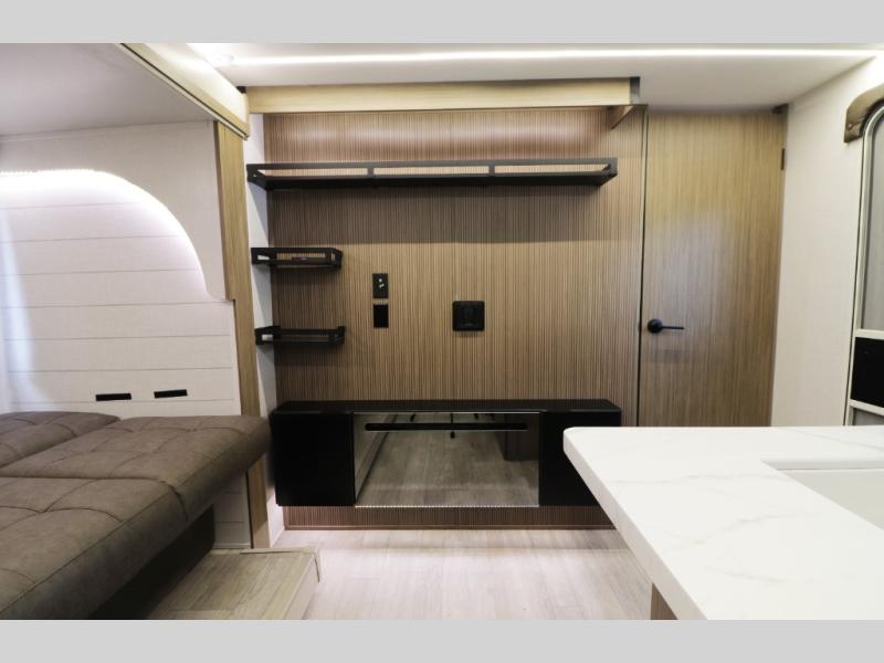 Modern “Best in Class” upgrades: Roof mount solar prep, JBL stereo, back-up camera prep, pre-installed TV brackets (living area & exterior), and dimmable interior LED “blade lighting”