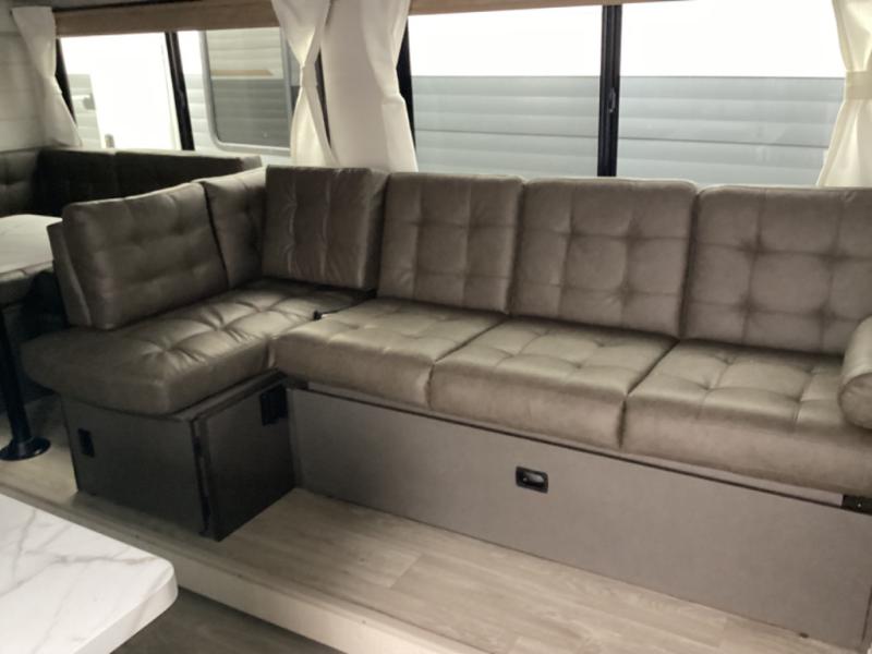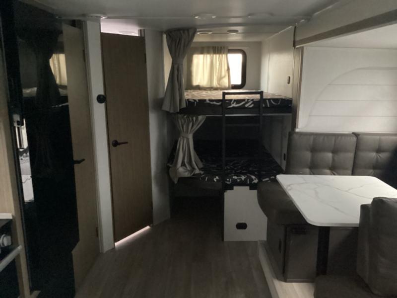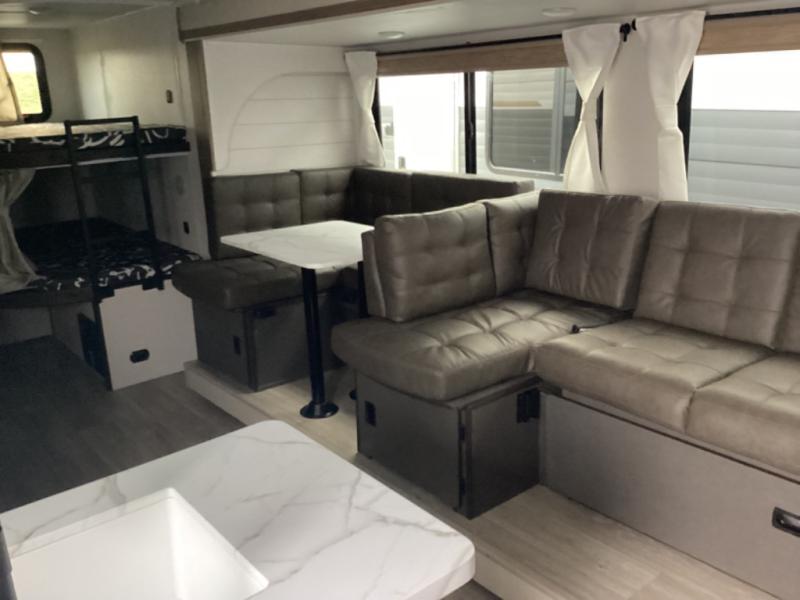 If you need a trailer that will enhance your family getaways, this Wildwood X-Lite travel trailer is it! Because of the double-size bunks in the back and the custom king bed with Versa-Tilt in the front private bedroom, your family can stretch out and sleep comfortably, and the Versa Lounge, which is made up of a U-shaped dinette and sofa, can also transform into extra sleeping space if needed. And your whole crew will love to relax by the fireplace in the evenings. Outside, a full pass-thru storage keeps your things packed away and a 15' patio awning gives you shade!