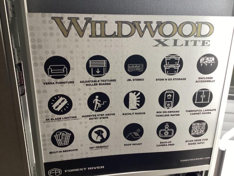 The Wildwood X-Lite travel trailers are packed with hassle-free camping amenities! There are a variety of floorplans to choose from so you cand find the best one to fit your needs. The enclosed Accessibelly will help protect against the elements and debris during transport, and the exterior retro/metal redesign is sure to be eye-catching! There are stylish roller shades inside, along with updated backsplash, elegant curtain rods and curtains, plus many more interior comforts! Choose a Wildwood X-Lite travel trailer today for quality and value!