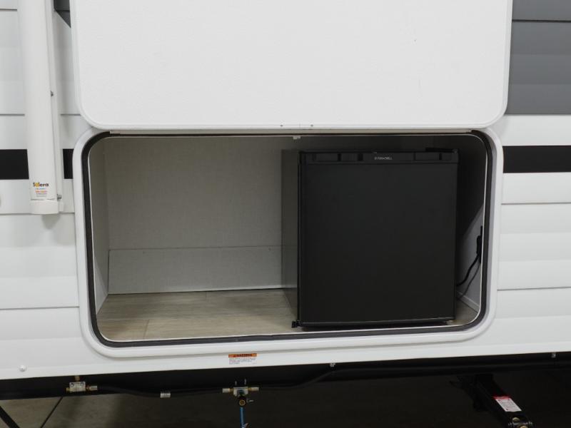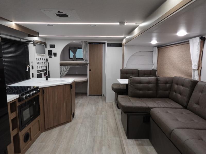 The Wildwood X-Lite travel trailers are packed with hassle-free camping amenities! The enclosed Accessibelly will help protect against the elements and debris during transport, and the exterior retro/metal redesign is sure to be eye-catching! There are stylish roller shades inside, along with updated backsplash, elegant curtain rods and curtains, plus many more interior comforts! Choose a Wildwood X-Lite travel trailer today for quality and value!