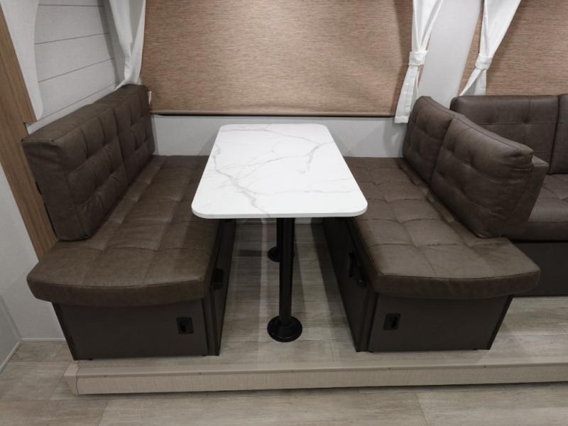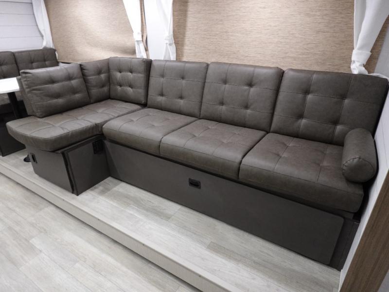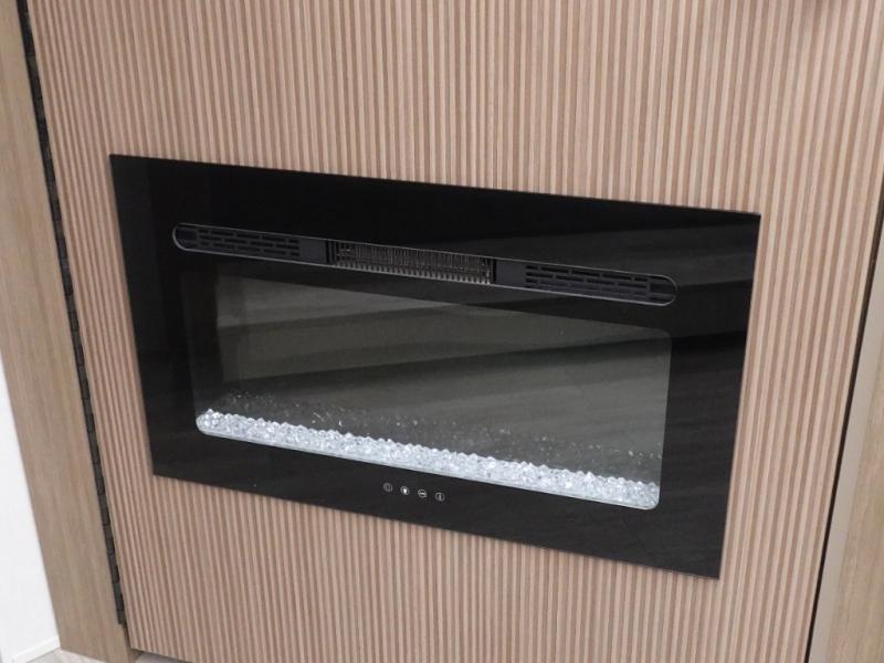 You're sure to make camping memories in this spacious travel trailer! You can easily sleep eight people each night thanks to the double-size bunks, the custom king bed with Versa Tilt in the front bedroom plus the Versa-Lounge within the large slide out! The full kitchen will let you make meals each day, and you'll appreciate the hidden pantry with shelves behind the fireplace. There is also a booth dinette where you can dine together or play a game of cards after dinner is cleaned up, or you may just find yourselves outdoors under the 16' awning. And don't overlook the full bath, complete with a tub/shower that will make bath time easier if you have little ones.