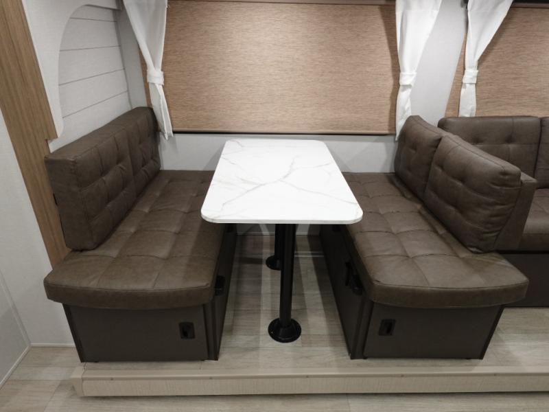 The Wildwood X-Lite travel trailers are packed with hassle-free camping amenities! The enclosed Accessibelly will help protect against the elements and debris during transport, and the exterior retro/metal redesign is sure to be eye-catching! There are stylish roller shades inside, along with updated backsplash, elegant curtain rods and curtains, plus many more interior comforts! Choose a Wildwood X-Lite travel trailer today for quality and value!