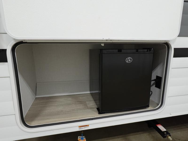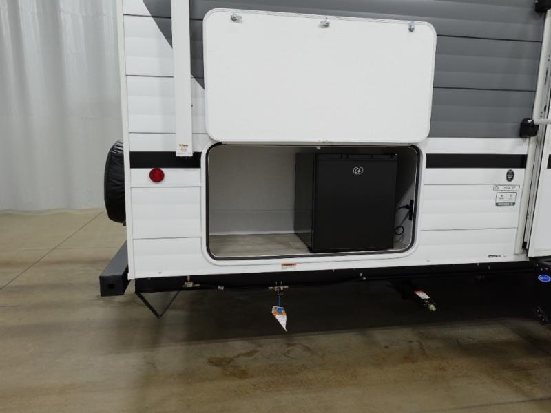 The Wildwood X-Lite travel trailers are packed with hassle-free camping amenities! The enclosed Accessibelly will help protect against the elements and debris during transport, and the exterior retro/metal redesign is sure to be eye-catching! There are stylish roller shades inside, along with updated backsplash, elegant curtain rods and curtains, plus many more interior comforts! Choose a Wildwood X-Lite travel trailer today for quality and value!