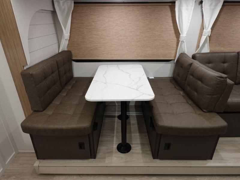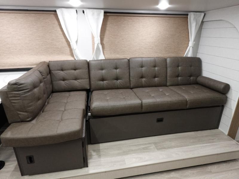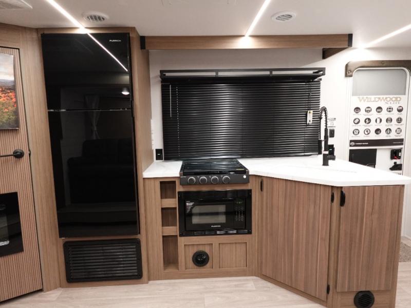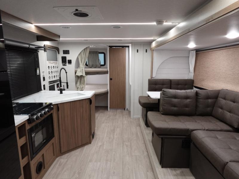 The Wildwood X-Lite travel trailers are packed with hassle-free camping amenities! The enclosed Accessibelly will help protect against the elements and debris during transport, and the exterior retro/metal redesign is sure to be eye-catching! There are stylish roller shades inside, along with updated backsplash, elegant curtain rods and curtains, plus many more interior comforts! Choose a Wildwood X-Lite travel trailer today for quality and value!