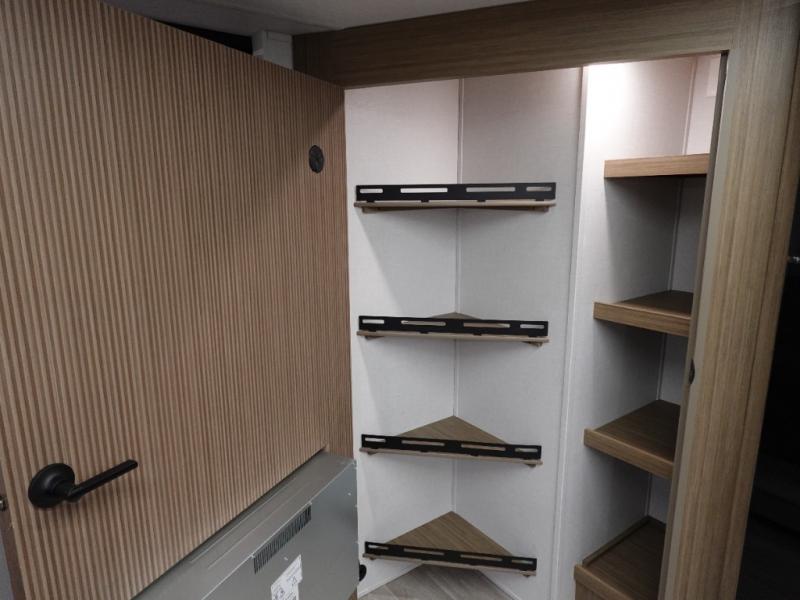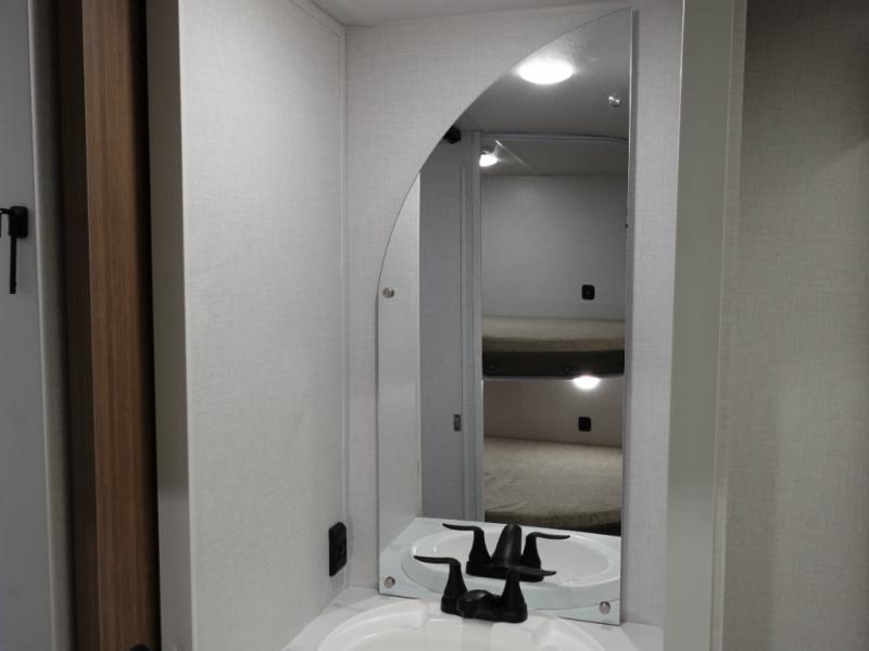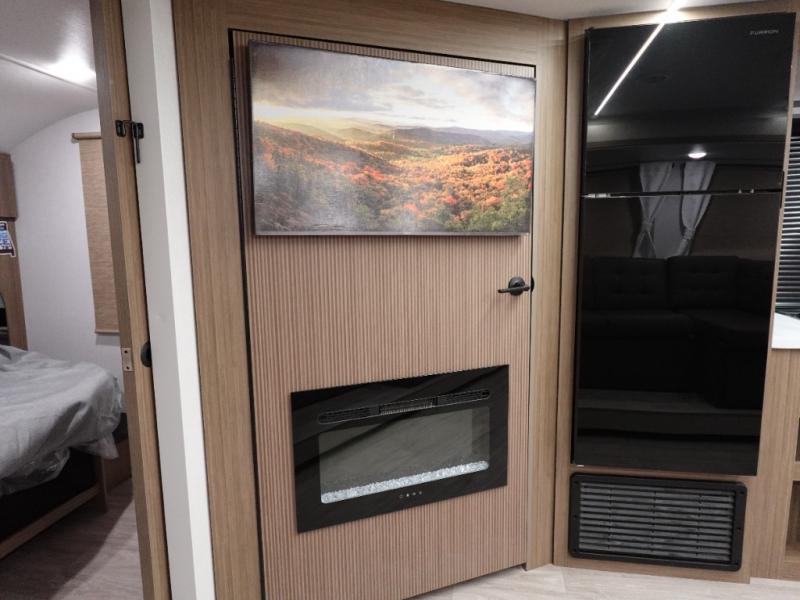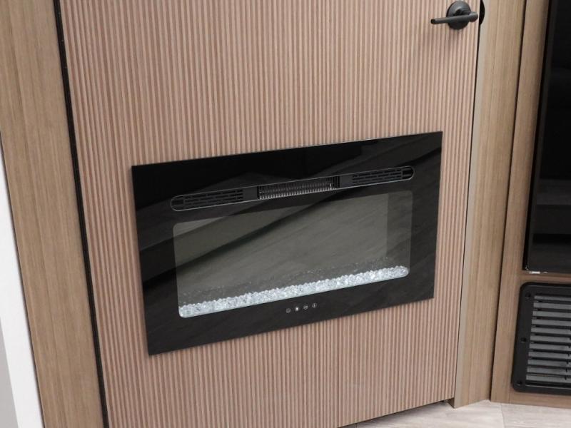 You're sure to make camping memories in this spacious travel trailer! You can easily sleep eight people each night thanks to the double-size bunks, the custom king bed with Versa Tilt in the front bedroom plus the Versa-Lounge within the large slide out! The full kitchen will let you make meals each day, and you'll appreciate the hidden pantry with shelves behind the fireplace. There is also a booth dinette where you can dine together or play a game of cards after dinner is cleaned up, or you may just find yourselves outdoors under the 16' awning. And don't overlook the full bath, complete with a tub/shower that will make bath time easier if you have little ones.