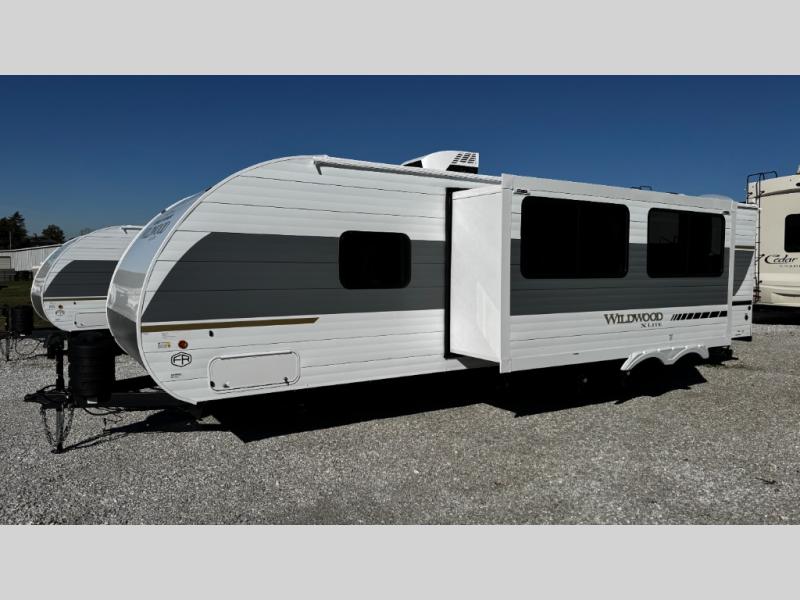 The Wildwood X-Lite travel trailers are packed with hassle-free camping amenities! There are a variety of floorplans to choose from between three different regions. The enclosed Accessibelly will help protect against the elements and debris during transport, and the exterior retro/metal redesign is sure to be eye-catching! There are stylish roller shades inside, along with updated backsplash, elegant curtain rods and curtains, plus many more interior comforts! Choose a Wildwood X-Lite travel trailer today for quality and value!