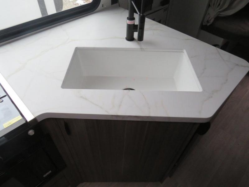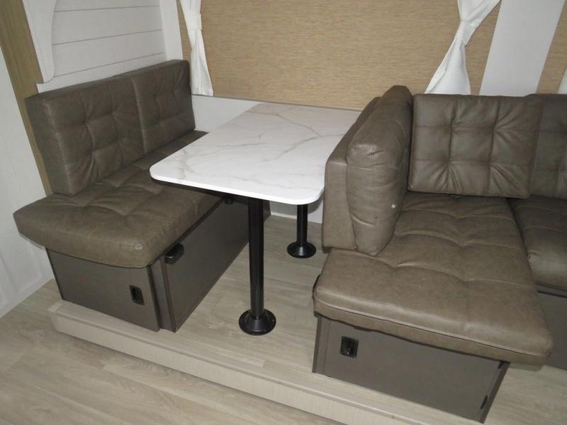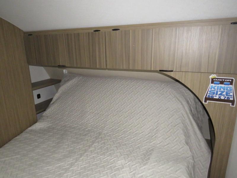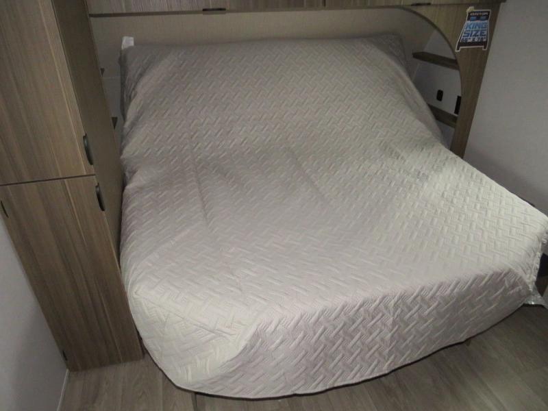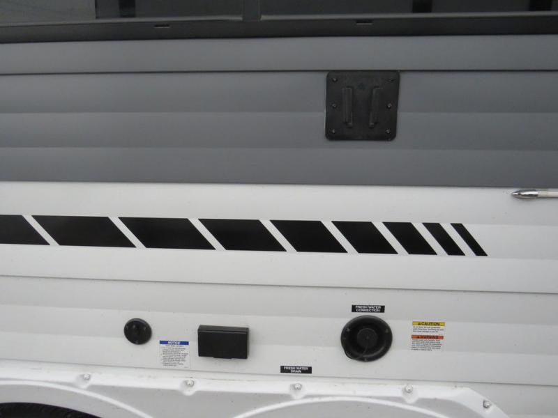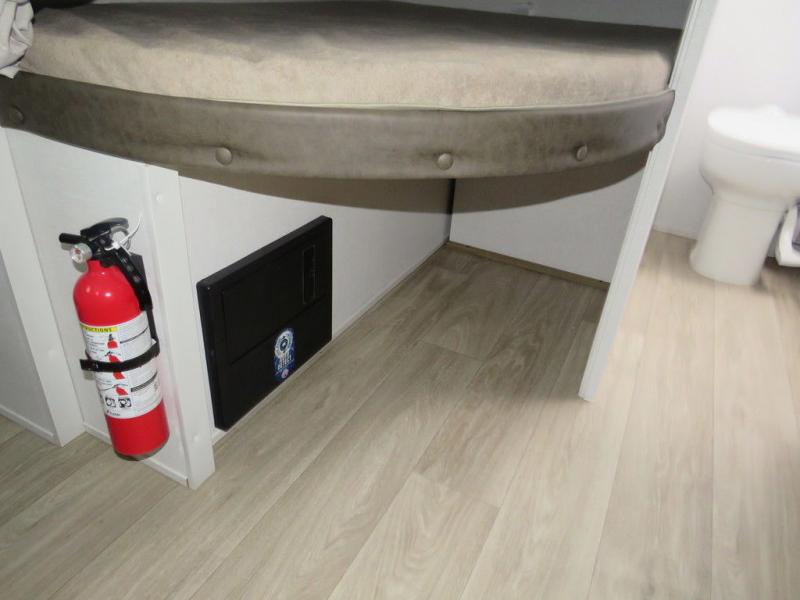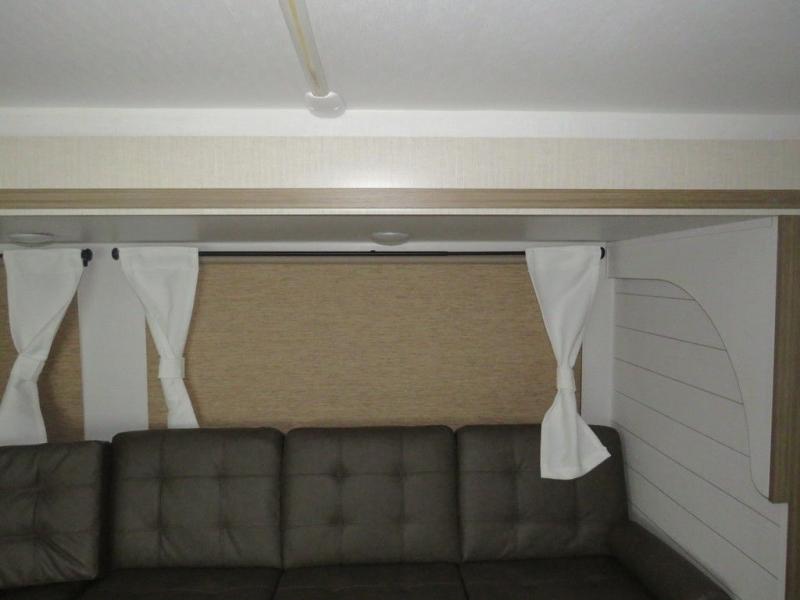 You're sure to make camping memories in this spacious travel trailer! You can easily sleep eight people each night thanks to the double-size bunks, the custom king bed with Versa Tilt in the front bedroom plus the Versa-Lounge within the large slide out! The full kitchen will let you make meals each day, and you'll appreciate the hidden pantry with shelves behind the fireplace. There is also a booth dinette where you can dine together or play a game of cards after dinner is cleaned up, or you may just find yourselves outdoors under the 16' awning. And don't overlook the private bath with a shower and toilet, and the sink just outside the room, allowing to people to freshen up at once!