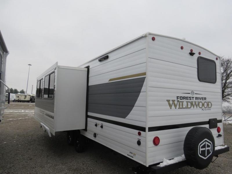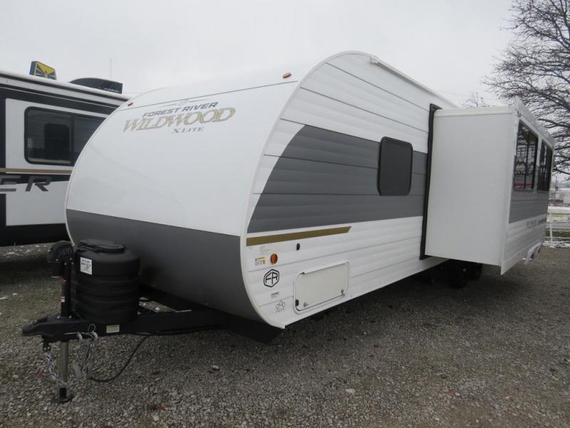 The Wildwood X-Lite travel trailers are packed with hassle-free camping amenities! There are a variety of floorplans to choose from so you can find the best one to fit your needs. The enclosed Accessibelly will help protect against the elements and debris during transport, and the exterior retro/metal redesign is sure to be eye-catching! There are stylish roller shades inside, along with updated backsplash, elegant curtain rods and curtains, plus many more interior comforts! Choose a Wildwood X-Lite travel trailer today for quality and value!