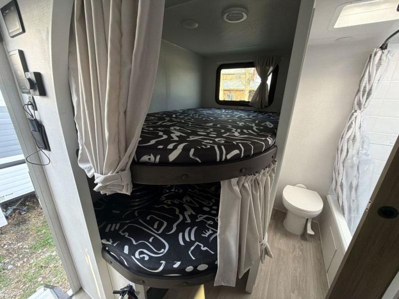 The Wildwood X-Lite travel trailers are packed with hassle-free camping amenities! There are a variety of floorplans to choose from between three different regions. The enclosed Accessibelly will help protect against the elements and debris during transport, and the exterior retro/metal redesign is sure to be eye-catching! There are stylish roller shades inside, along with updated backsplash, elegant curtain rods and curtains, plus many more interior comforts! Choose a Wildwood X-Lite travel trailer today for quality and value!