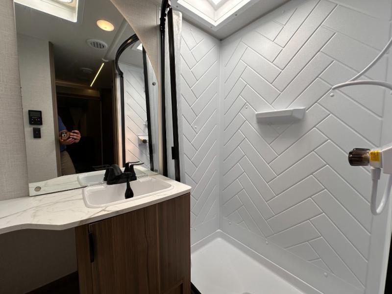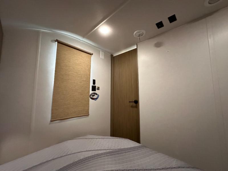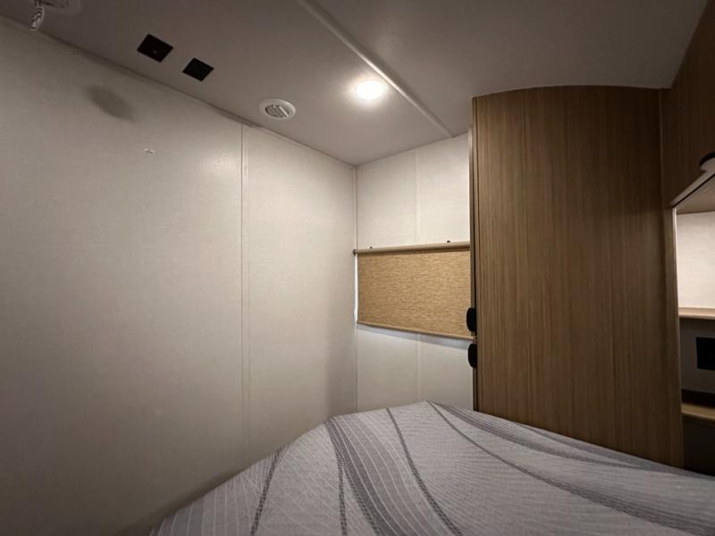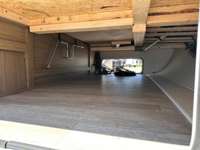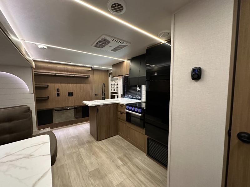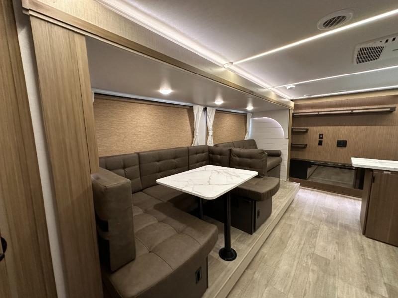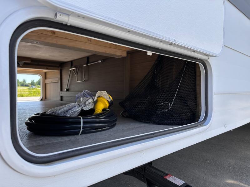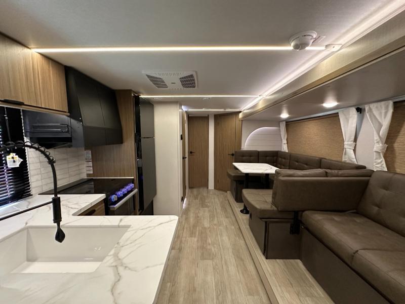 If you like to travel with a large crew, choose this Wildwood X-Lite travel trailer! This trailer has two private sleeping spaces with a private bedroom up front and a private bunkhouse in the back. Not only does the bunkhouse have three bunk beds, but it also has a closet for storage and a jiffy sofa for lounging. In the main living area, there is a large slide that holds the U-shaped dinette and sofa. These pieces of furniture are a part of the Versa Lounge, and you can customize them to function as you need them to. The panoramic windows surround the dinette and sofa so that you can take in the scenic views while you relax. You even have an outdoor camp kitchen to make it more convenient.
