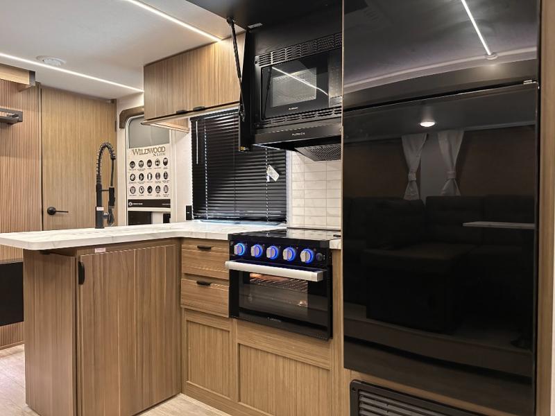 The Wildwood X-Lite travel trailers are packed with hassle-free camping amenities! There are a variety of floorplans to choose from between three different regions. The enclosed Accessibelly will help protect against the elements and debris during transport, and the exterior retro/metal redesign is sure to be eye-catching! There are stylish roller shades inside, along with updated backsplash, elegant curtain rods and curtains, plus many more interior comforts! Choose a Wildwood X-Lite travel trailer today for quality and value!