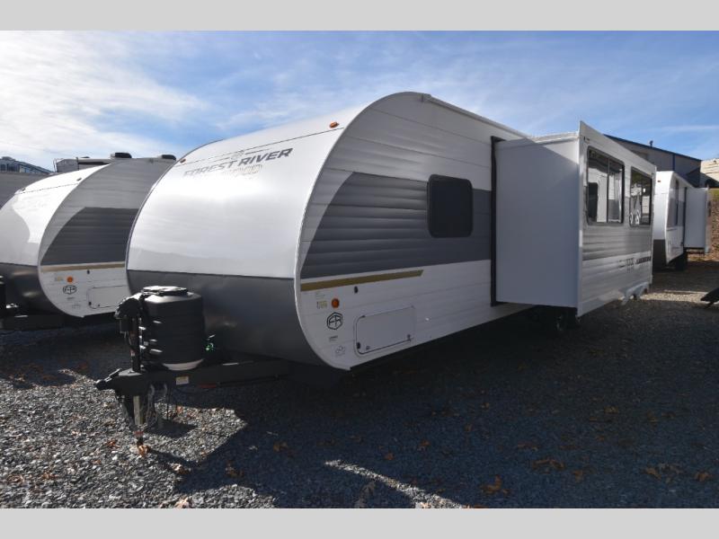 The Wildwood X-Lite travel trailers are packed with hassle-free camping amenities! There are a variety of floorplans to choose from between three different regions. The enclosed Accessibelly will help protect against the elements and debris during transport, and the exterior retro/metal redesign is sure to be eye-catching! There are stylish roller shades inside, along with updated backsplash, elegant curtain rods and curtains, plus many more interior comforts! Choose a Wildwood X-Lite travel trailer today for quality and value!