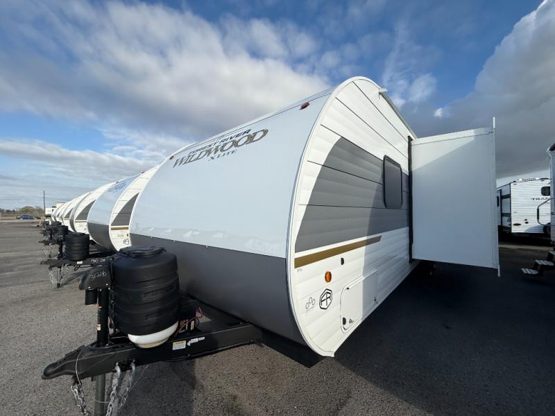 The Wildwood X-Lite travel trailers are packed with hassle-free camping amenities! There are a variety of floorplans to choose from so you can find the best one to fit your needs. The enclosed Accessibelly will help protect against the elements and debris during transport, and the exterior retro/metal redesign is sure to be eye-catching! There are stylish roller shades inside, along with updated backsplash, elegant curtain rods and curtains, plus many more interior comforts! Choose a Wildwood X-Lite travel trailer today for quality and value!