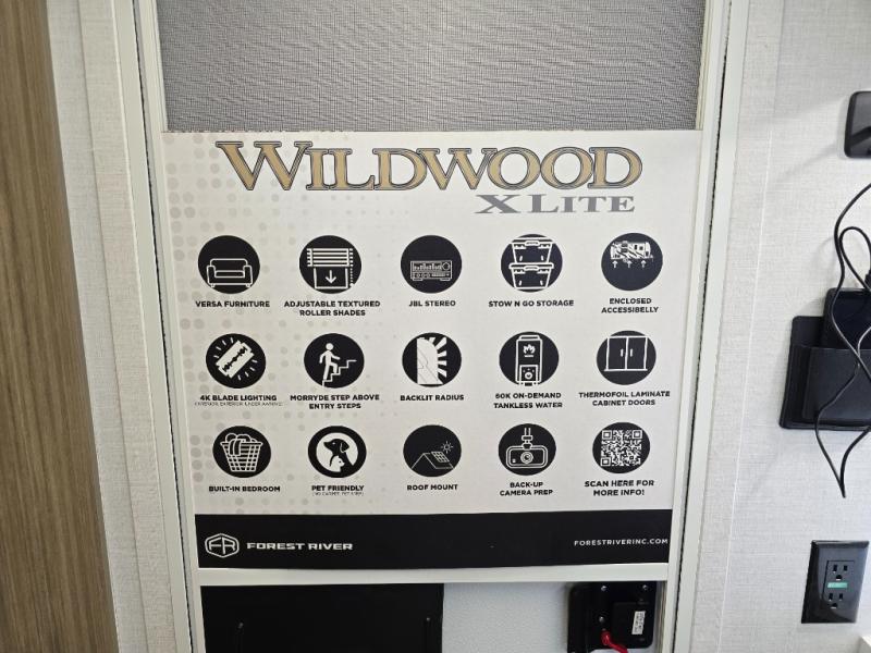 The Wildwood X-Lite travel trailers are packed with hassle-free camping amenities! There are a variety of floorplans to choose from so you can find the best one to fit your needs. The enclosed Accessibelly will help protect against the elements and debris during transport, and the exterior retro/metal redesign is sure to be eye-catching! There are stylish roller shades inside, along with updated backsplash, elegant curtain rods and curtains, plus many more interior comforts! Choose a Wildwood X-Lite travel trailer today for quality and value!