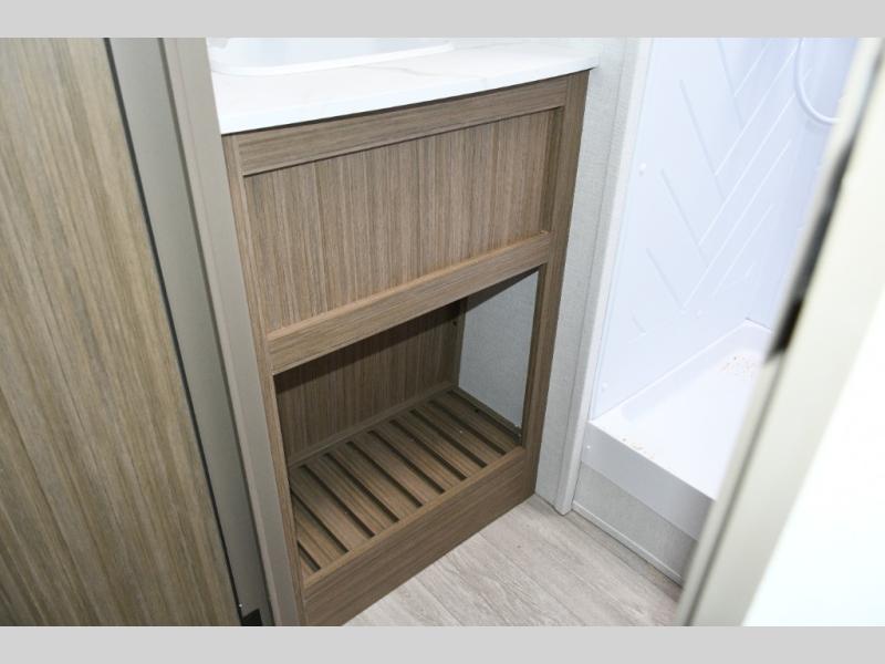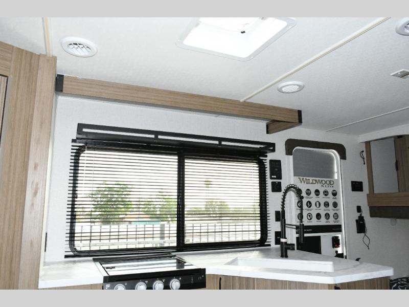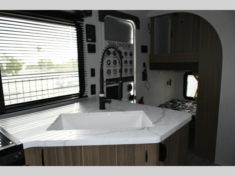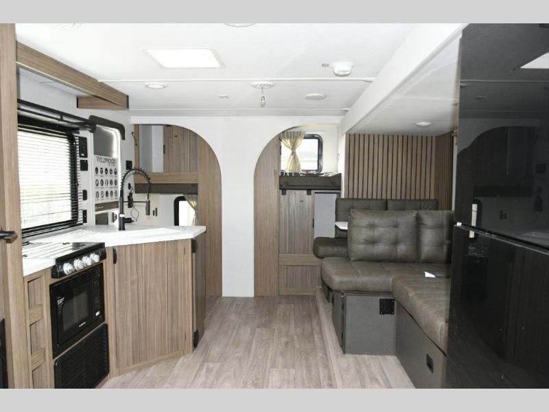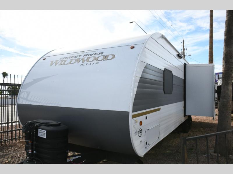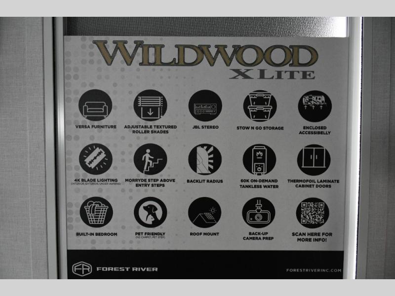 Forest River’s Wildwood X-Lite travel trailers are engineered for hassle-free camping. The enclosed Accessibelly protects against debris and the elements, while the retro/metal exterior design makes a statement at the campground. Inside, roller shades, elegant curtain rods, and stylish backsplash combine with functional layouts to make every trip comfortable and convenient.