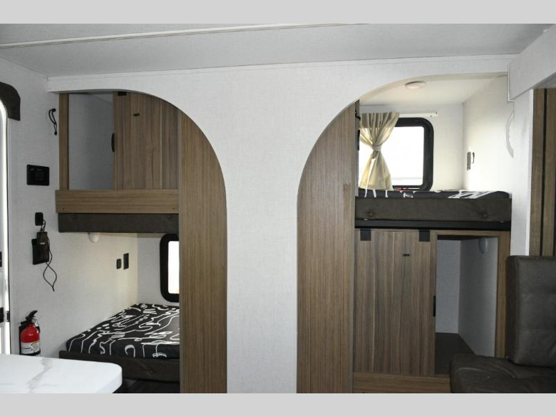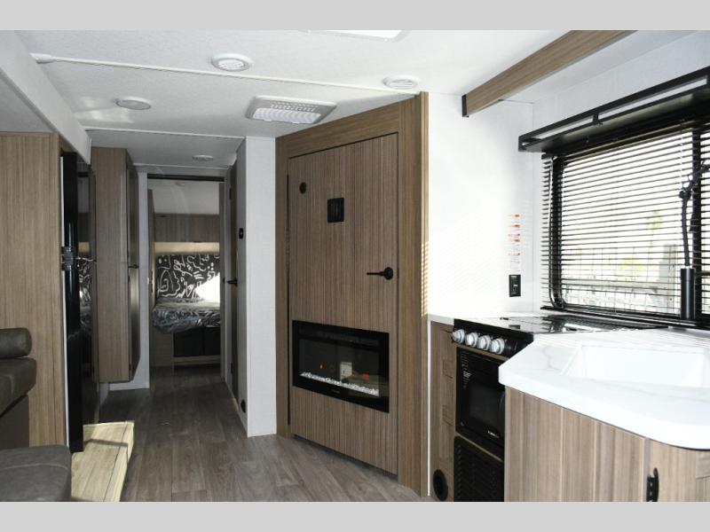 The Wildwood X-Lite 28ICE is designed for families and friends who love the outdoors without sacrificing comfort. The rear bunk beds with private doors give everyone their own space, while the front Versa-Tilt king bed offers ultimate sleeping comfort for parents. The booth dinette and Versa-Lounge provide extra seating and sleep options, perfect for game nights, movie evenings, or extra guests. The full kitchen and hidden pantry make cooking for the crew easy, and the entertainment center with fireplace ensures relaxing evenings after a day of adventure.