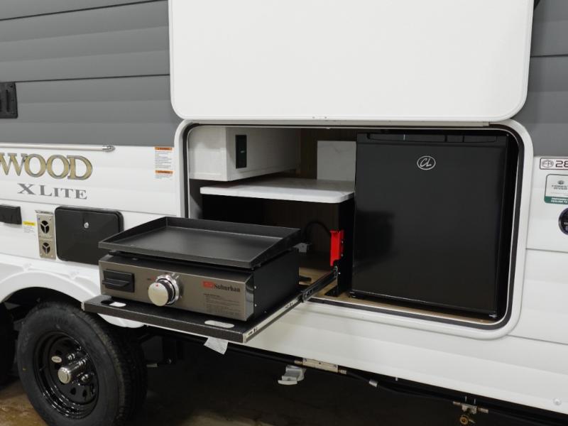 The Wildwood X-Lite travel trailers are packed with hassle-free camping amenities! There are a variety of floorplans to choose from between three different regions. The enclosed Accessibelly will help protect against the elements and debris during transport, and the exterior retro/metal redesign is sure to be eye-catching! There are stylish roller shades inside, along with updated backsplash, elegant curtain rods and curtains, plus many more interior comforts! Choose a Wildwood X-Lite travel trailer today for quality and value!
