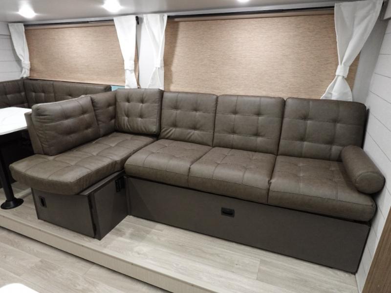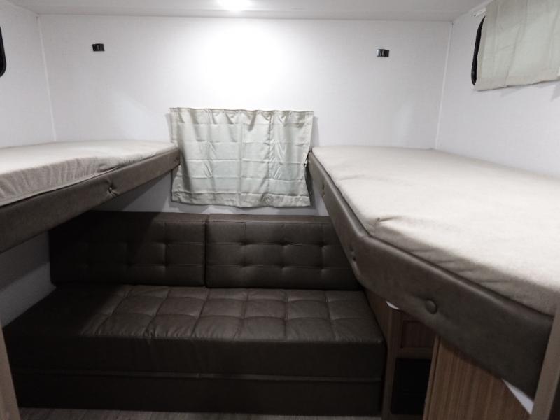 You can do so much with this Wildwood X-Lite travel trailer because it has a Versa Lounge in the main living area, and Versa-bunks plus a Versa-queen sofa in the private bunkhouse! These pieces of furniture provide you with versatility while you travel so that your trailer can best fit your lifestyle. The kitchen is completely outfitted with excellent tools to make all of your meals delicious, and the full bathroom offers you a walk-in shower for the most convenience. The exterior portion of this trailer is complete with a 16' awning and exterior speakers, and it is even more accommodating with the outdoor kitchen with a griddle.