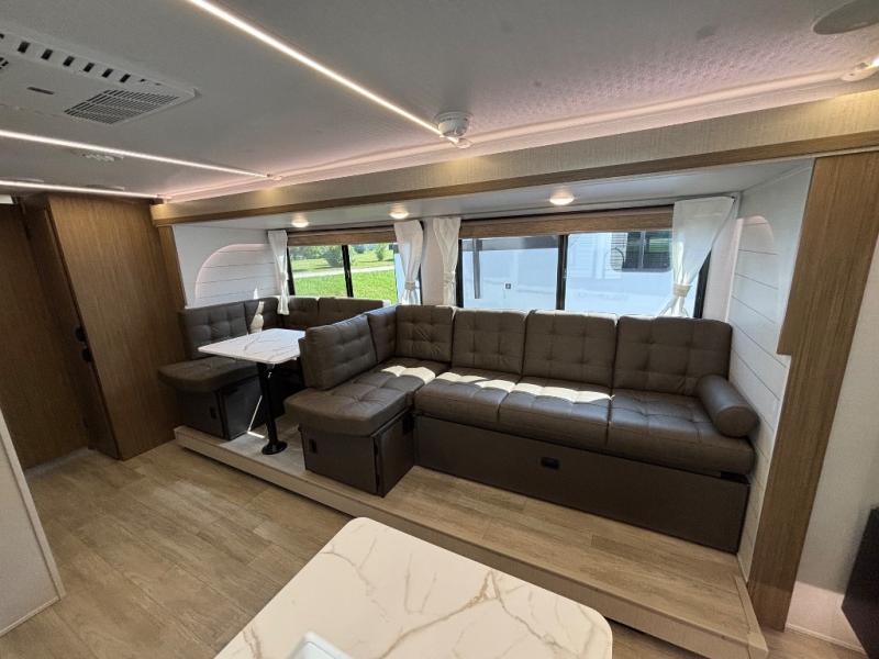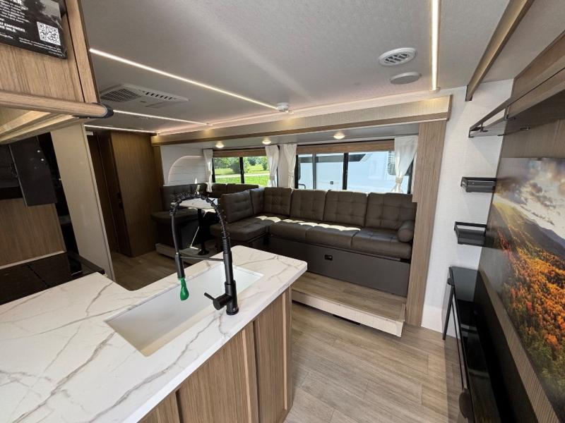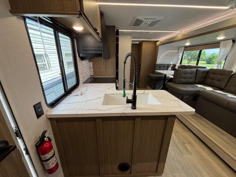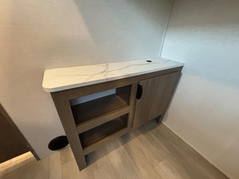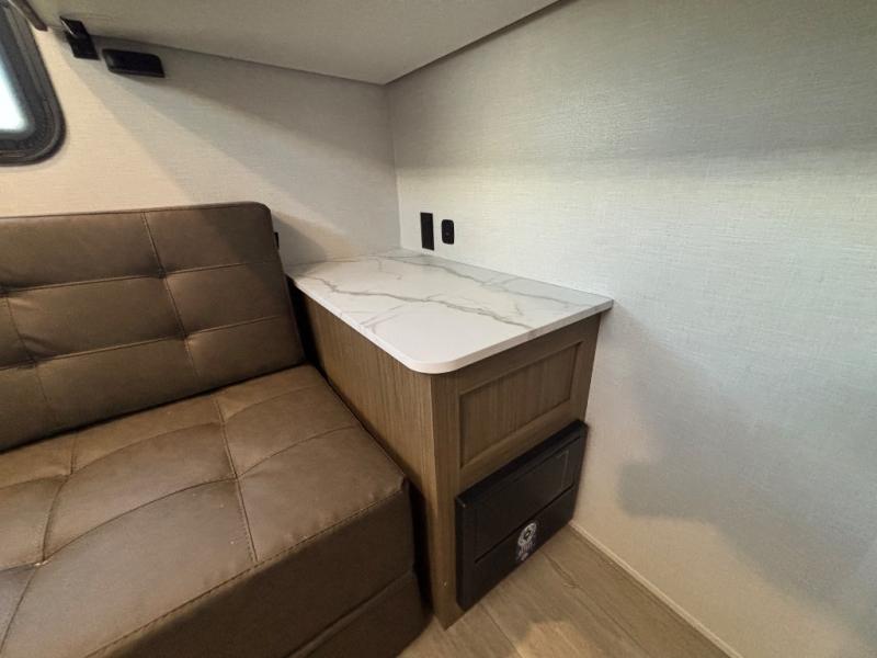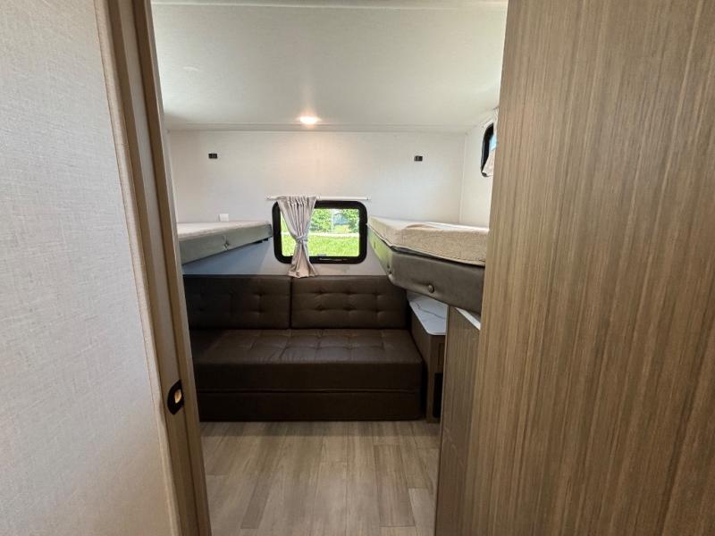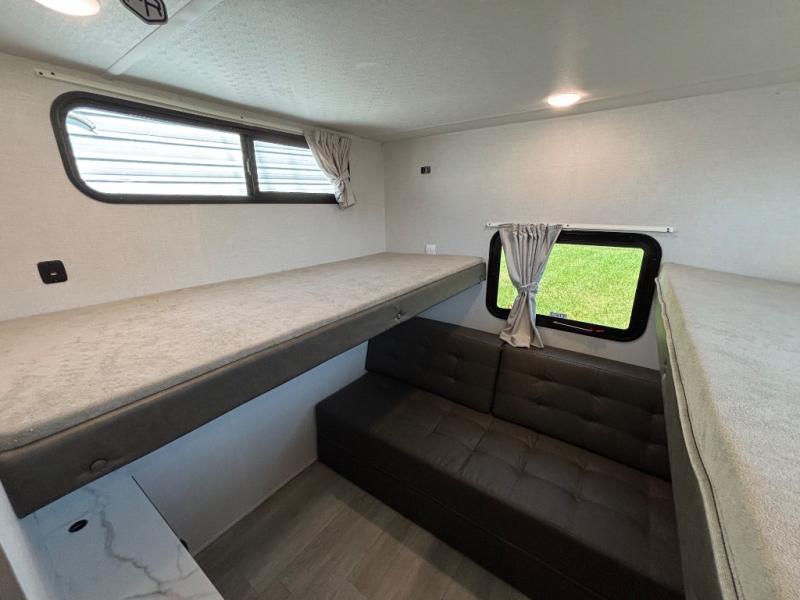 You can do so much with this Wildwood X-Lite travel trailer because it has a Versa Lounge in the main living area, and Versa-bunks plus a Versa-queen sofa in the private bunkhouse! These pieces of furniture provide you with versatility while you travel so that your trailer can best fit your lifestyle. The kitchen is completely outfitted with excellent tools to make all of your meals delicious, and the full bathroom offers you a walk-in shower for the most convenience. The exterior portion of this trailer is complete with a 16' awning and exterior speakers, and it is even more accommodating with the outdoor kitchen with a griddle.