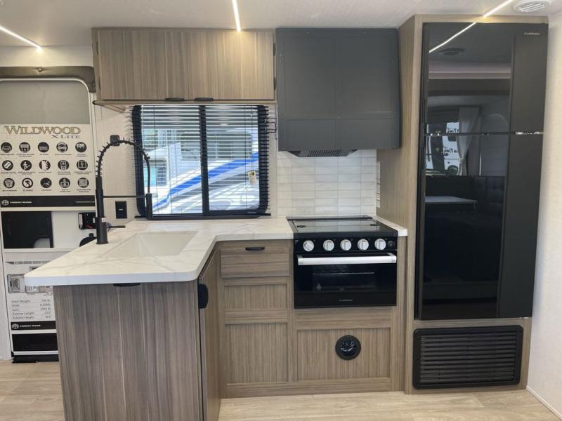 The Wildwood X-Lite travel trailers are packed with hassle-free camping amenities! There are a variety of floorplans to choose from between three different regions. The enclosed Accessibelly will help protect against the elements and debris during transport, and the exterior retro/metal redesign is sure to be eye-catching! There are stylish roller shades inside, along with updated backsplash, elegant curtain rods and curtains, plus many more interior comforts! Choose a Wildwood X-Lite travel trailer today for quality and value!