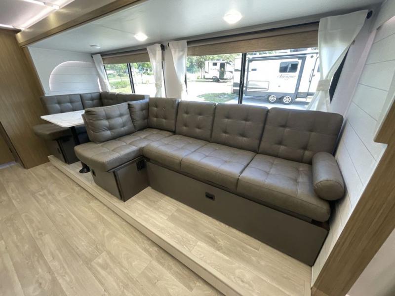 You can do so much with this Wildwood X-Lite travel trailer because it has a Versa Lounge in the main living area, and Versa-bunks plus a Versa-queen sofa in the private bunkhouse! These pieces of furniture provide you with versatility while you travel so that your trailer can best fit your lifestyle. The kitchen is completely outfitted with excellent tools to make all of your meals delicious, and the full bathroom offers you a walk-in shower for the most convenience. The exterior portion of this trailer is complete with a 16' awning and exterior speakers, and it is even more accommodating with the outdoor kitchen with a griddle.