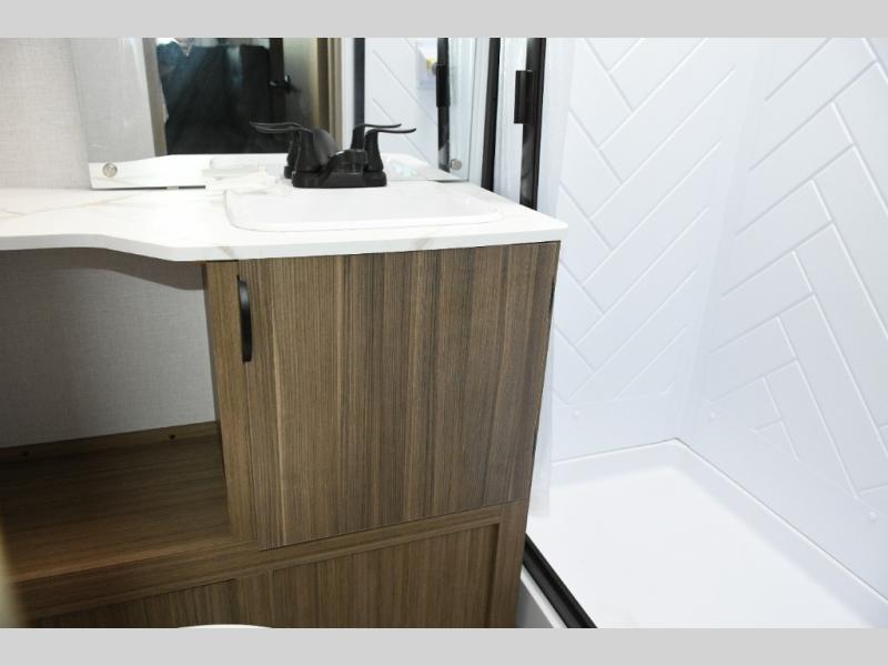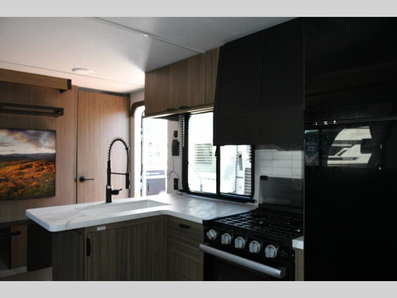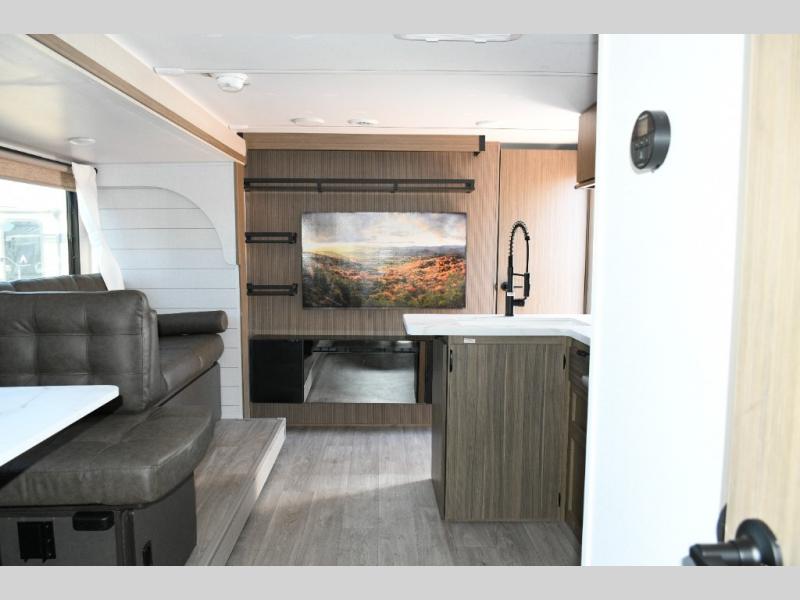 Inside, enjoy details like roller shades, a stylish backsplash, and residential touches that make every camping trip feel like home.
