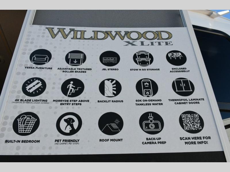 The Wildwood X-Lite line is engineered for durability and ease of travel, featuring Forest River’s Accessibelly enclosed underbelly for protection from road debris and weather. The aerodynamic profile and lightweight design make it easy to tow, while upgraded exterior metal accents add bold, modern style.