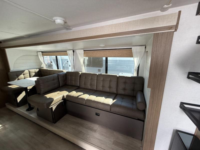 You can do so much with this Wildwood X-Lite travel trailer because it has a Versa Lounge in the main living area, and Versa-bunks plus a Versa-queen sofa in the private bunkhouse! These pieces of furniture provide you with versatility while you travel so that your trailer can best fit your lifestyle. The kitchen is completely outfitted with excellent tools to make all of your meals delicious, and the full bathroom offers you a walk-in shower for the most convenience. The exterior portion of this trailer is complete with a 16' awning and exterior speakers, and it is even more accommodating with the outdoor kitchen with a griddle.