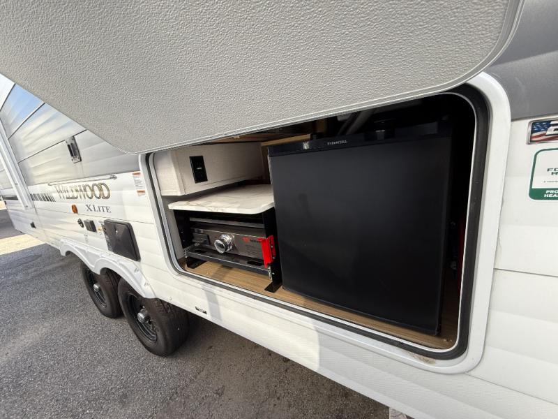 The Wildwood X-Lite travel trailers are packed with hassle-free camping amenities! There are a variety of floorplans to choose from between three different regions. The enclosed Accessibelly will help protect against the elements and debris during transport, and the exterior retro/metal redesign is sure to be eye-catching! There are stylish roller shades inside, along with updated backsplash, elegant curtain rods and curtains, plus many more interior comforts! Choose a Wildwood X-Lite travel trailer today for quality and value!