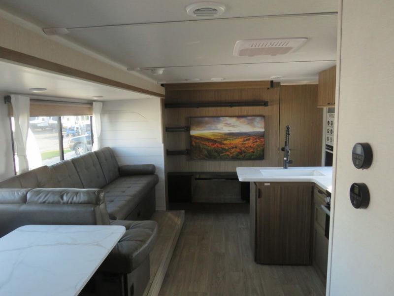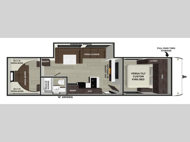 You can do so much with this Wildwood X-Lite travel trailer because it has a Versa Lounge in the main living area, and Versa-bunks plus a Versa-queen sofa in the private bunkhouse! These pieces of furniture provide you with versatility while you travel so that your trailer can best fit your lifestyle. The kitchen is completely outfitted with excellent tools to make all of your meals delicious, and the full bathroom offers you a walk-in shower for the most convenience. The exterior portion of this trailer is complete with a 16' awning and exterior speakers, and it is even more accommodating with the outdoor kitchen with a griddle.
