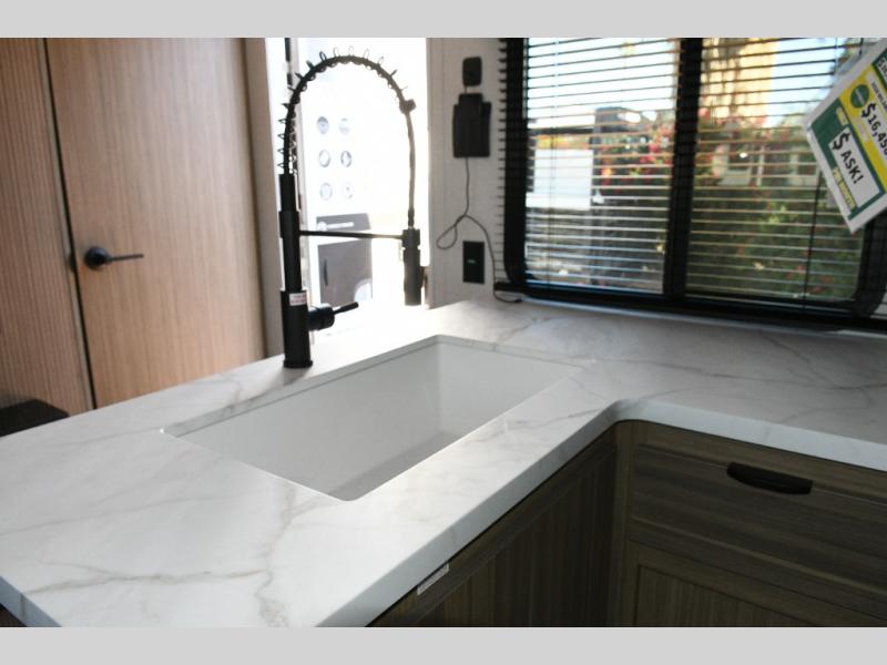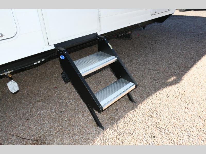 Outside, the 16' power awning creates a shaded oasis for relaxing, and exterior speakers let you bring the tunes outdoors for those laid-back evenings by the firepit.