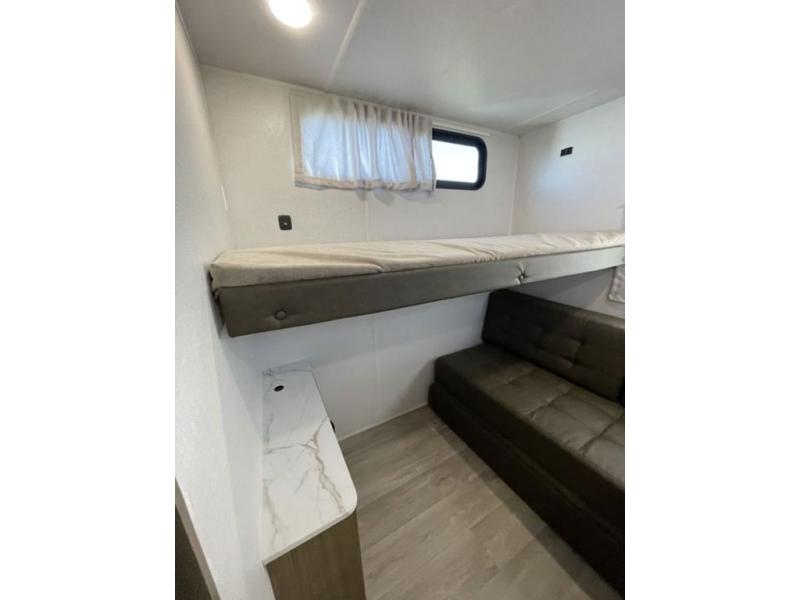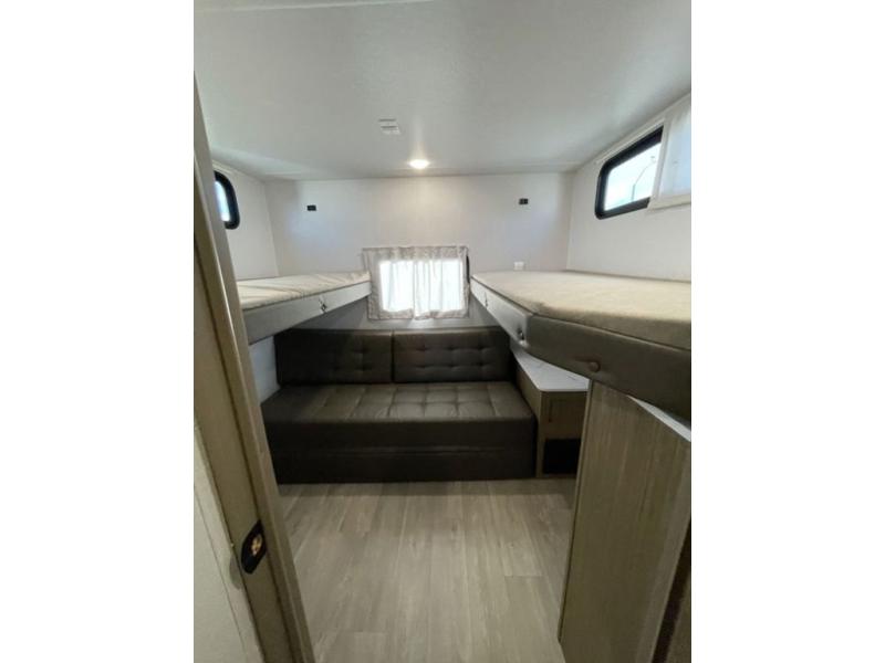 You can do so much with this Wildwood X-Lite travel trailer because it has a Versa Lounge in the main living area, and Versa-bunks plus a Versa-queen sofa in the private bunkhouse! These pieces of furniture provide you with versatility while you travel so that your trailer can best fit your lifestyle. The kitchen is completely outfitted with excellent tools to make all of your meals delicious, and the full bathroom offers you a walk-in shower for the most convenience. The exterior portion of this trailer is complete with a 16' awning and a full pass-thru storage for fishing poles, yard games and more!