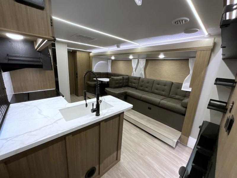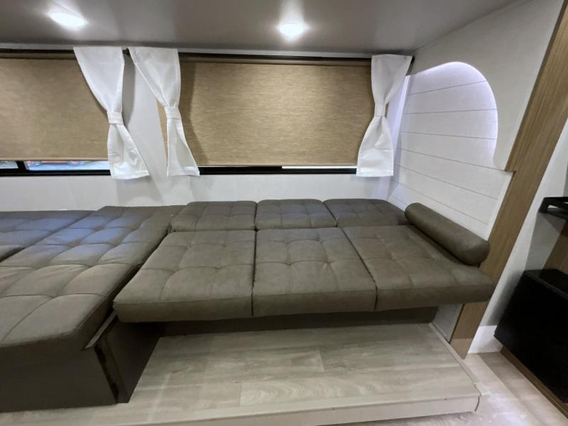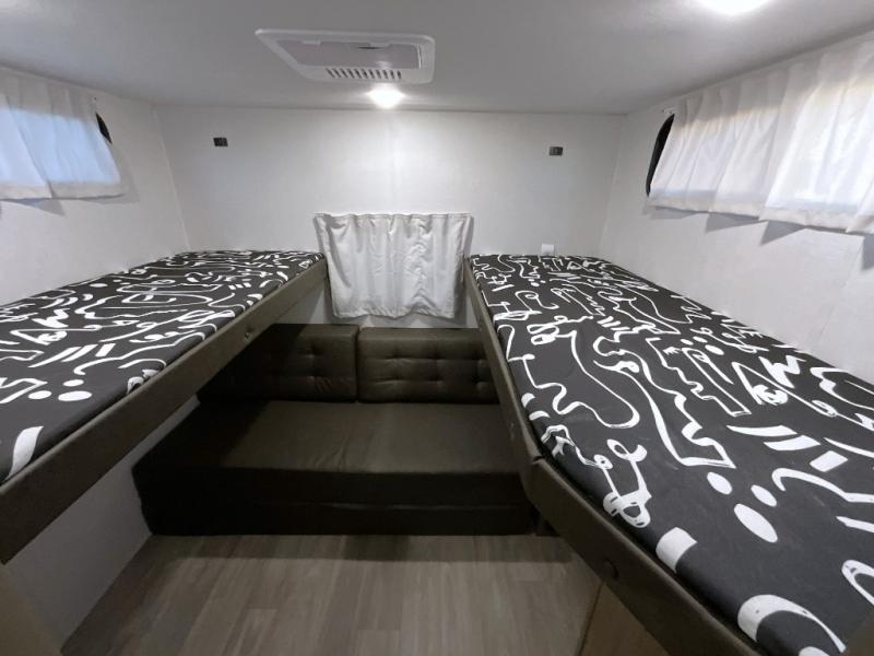 You can do so much with this Wildwood X-Lite travel trailer because it has a Versa Lounge in the main living area, and Versa-bunks plus a Versa-queen sofa in the private bunkhouse! These pieces of furniture provide you with versatility while you travel so that your trailer can best fit your lifestyle. The kitchen is completely outfitted with excellent tools to make all of your meals delicious, and the full bathroom offers you a walk-in shower for the most convenience. The exterior portion of this trailer is complete with a 16' awning and a full pass-thru storage for fishing poles, yard games and more!
